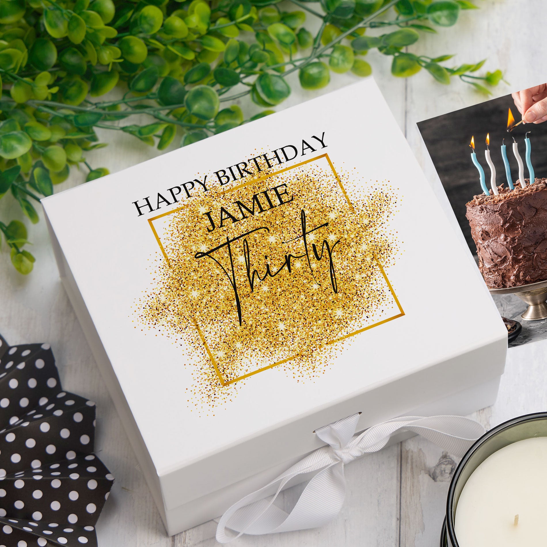 Personalised 30th Birthday Gift Keepsake Memory Box Gold Sparkles Design