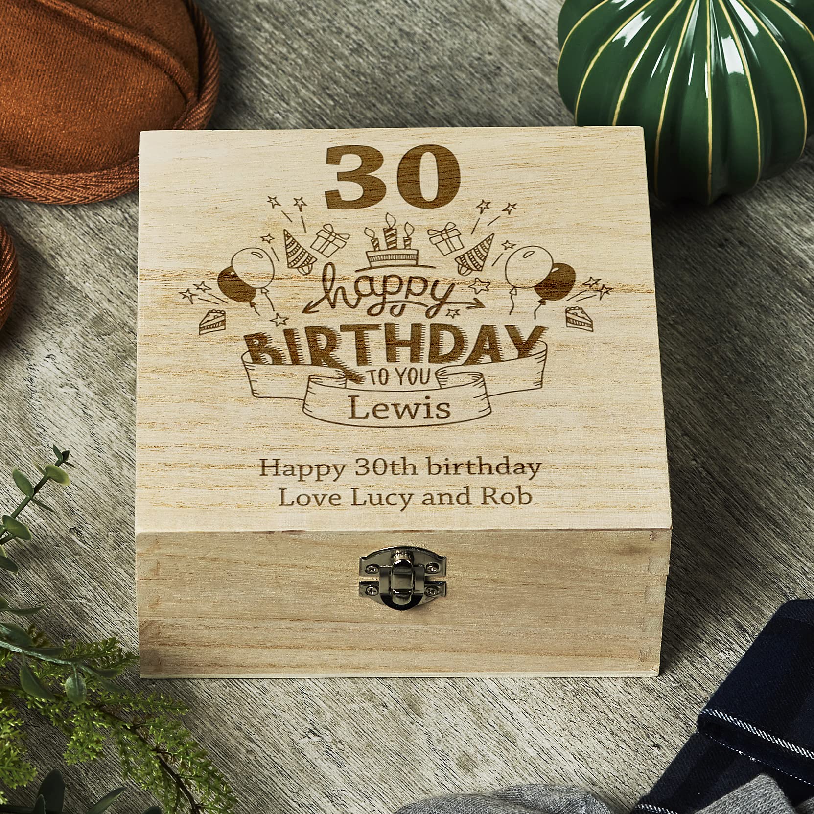 Personalised 30th Birthday Wooden Keepsake Box Gift Engraved