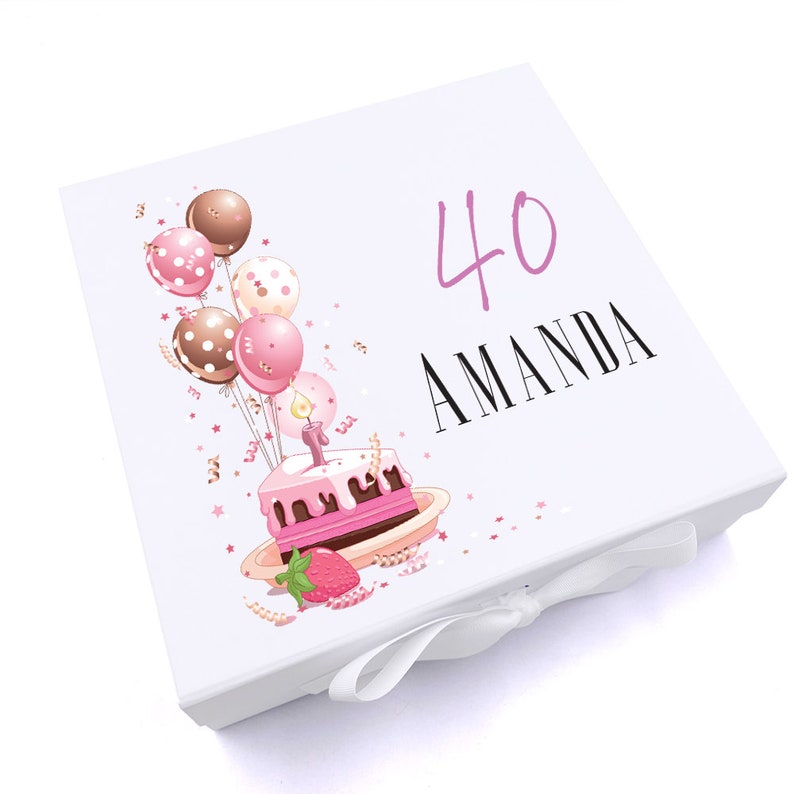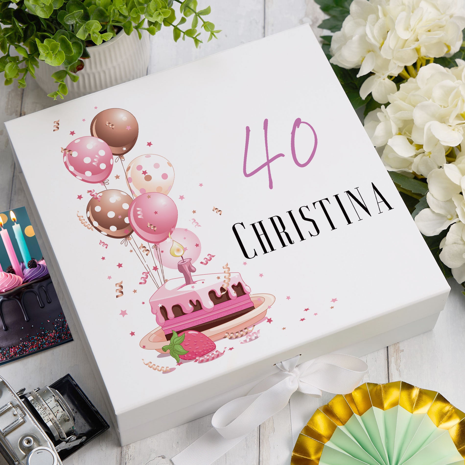 Celebrate her 40th birthday with a personalised keepsake memory box designed to hold cherished mementos from this special milestone. Crafted with attention to detail, the box features an elegant rigid card design, a secure magnetic closure, and a delicate grosgrain ribbon for a refined finish. This memory box not only provides a practical storage solution but also serves as a meaningful keepsake, allowing her to preserve treasured photos, letters, and keepsakes in style. Personalisation adds a unique touch, making it a thoughtful and lasting gift she will value for years to come.