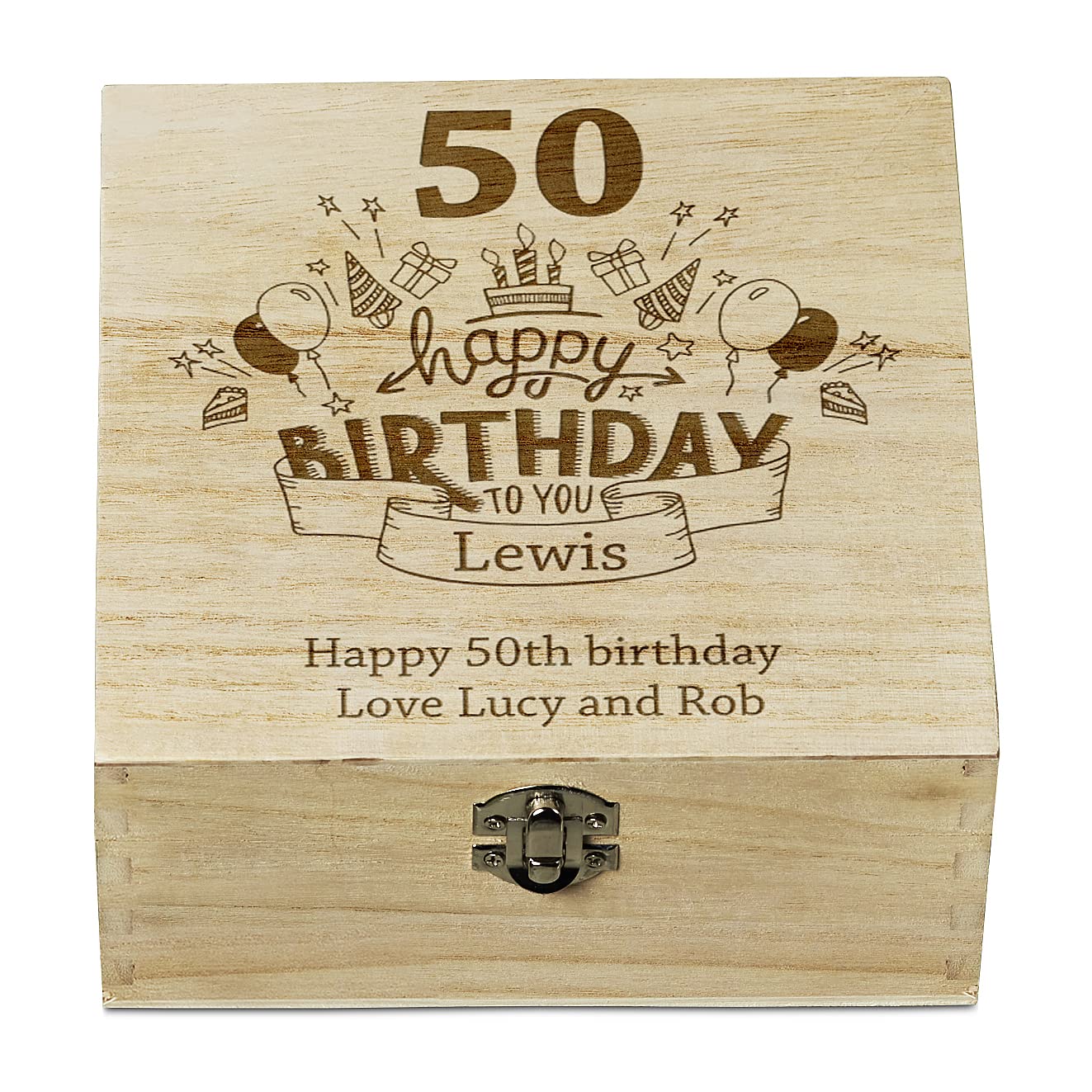 Personalised 50th Birthday Wooden Keepsake Box Gift Engraved