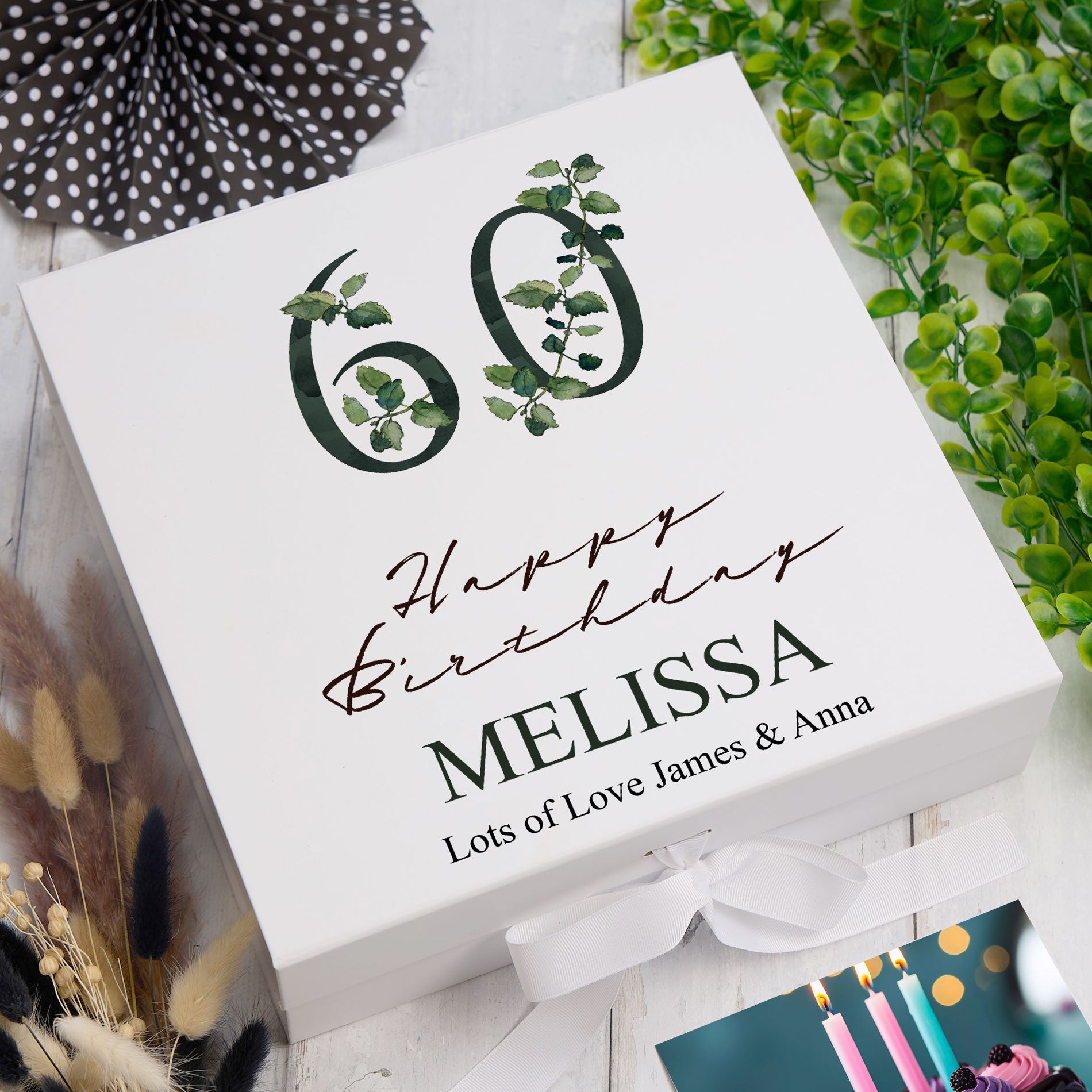 Personalised 60th Birthday Green Leaf Design Keepsake Memory Gift Box.