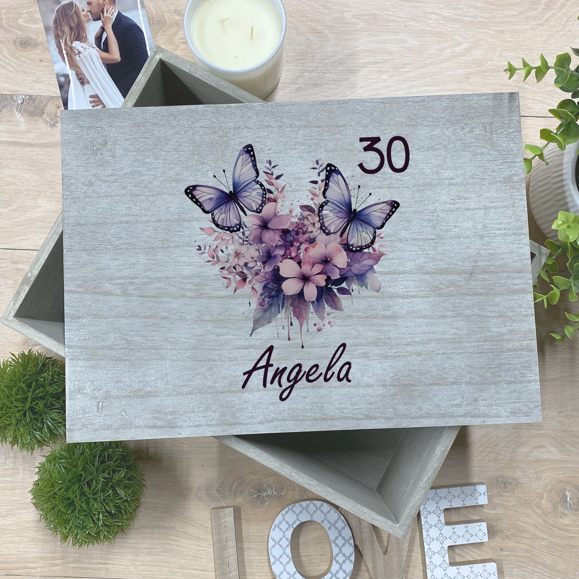 Crafted from premium wood, our Birthday Crate Keepsake Box with a watercolour design provides an unparalleled way to store precious items. Expertly made, its two parts easily open, allowing for both storage and display. The box measures 35 cm x 25 cm x 15 cm and includes a laser engraving of your desired personalisation.