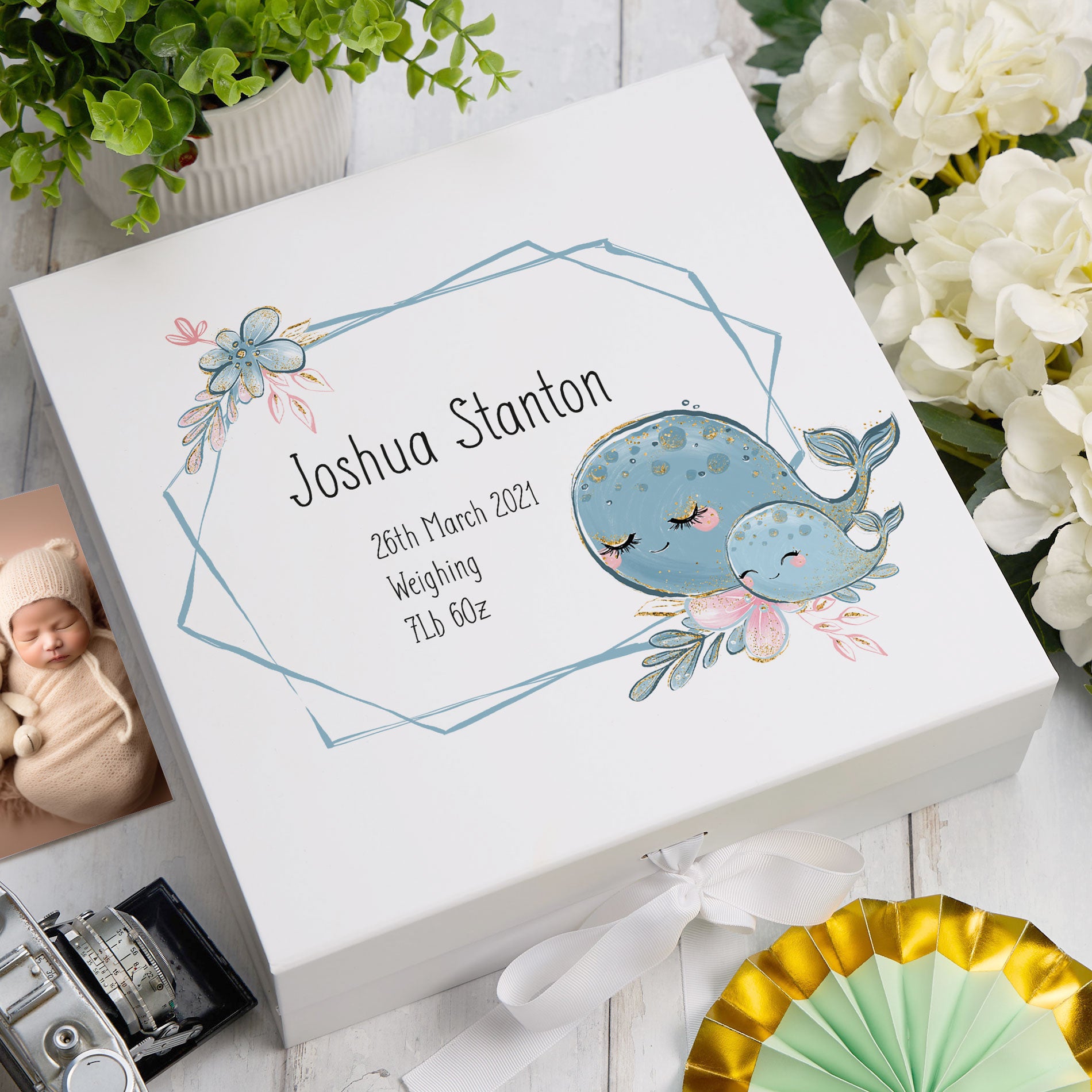 The personalised print on this luxury box is raised slightly to create a stunning embossed-style feature. The box itself is sturdy and durable - made from a luxurious 1200gsm white matt laminated rigid board. Available in two sizes and used as a gift box, as a memory box or as part of a hamper. Medium 17cm x 17cm x 8cm Large 30cm x 30cm x 9cm It can be used as a gift box, as a memory box or as part of a hamper.