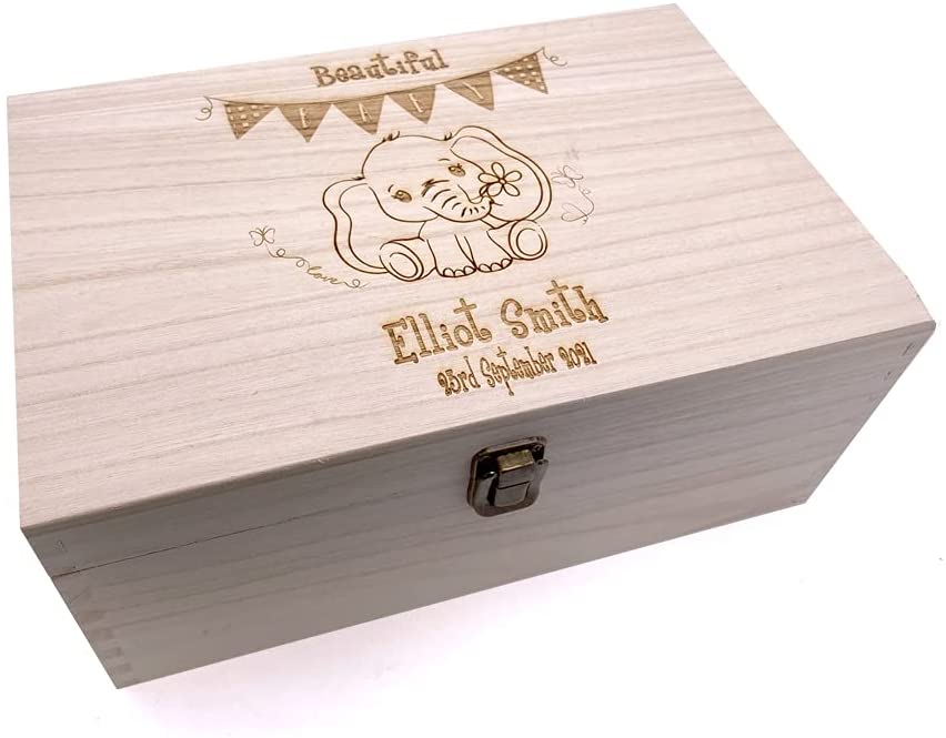 Personalised Baby Keepsake Memory Box Elephant and banner Design
