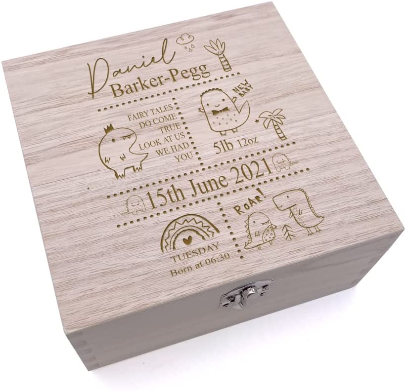 Made from wood this box is an ideal way to store those important keepsakes including 6" x 4" photos. The box is hinged for easy opening and comes with a clip closure. Dimensions: 17 x 17 x 7 cm