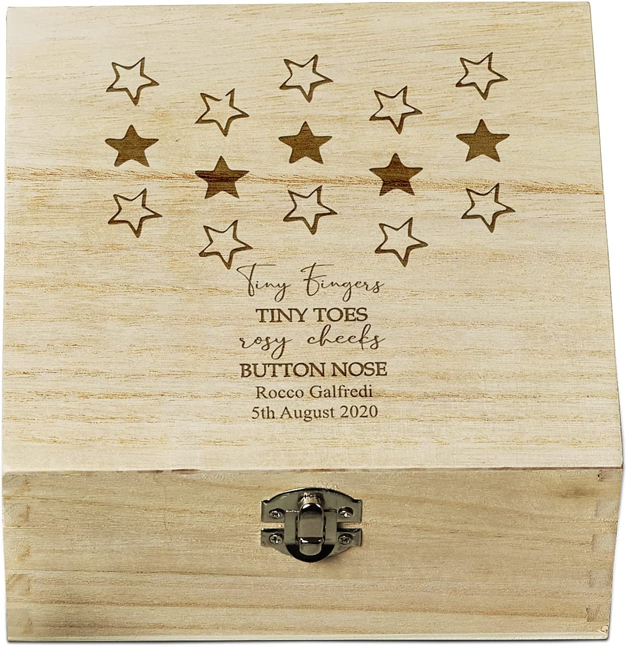 Made from wood this box is an ideal way to store those important keepsakes including 6" x 4" photos. The box is hinged for easy opening and comes with a clip closure. Dimensions: 17 x 17 x 7 cm