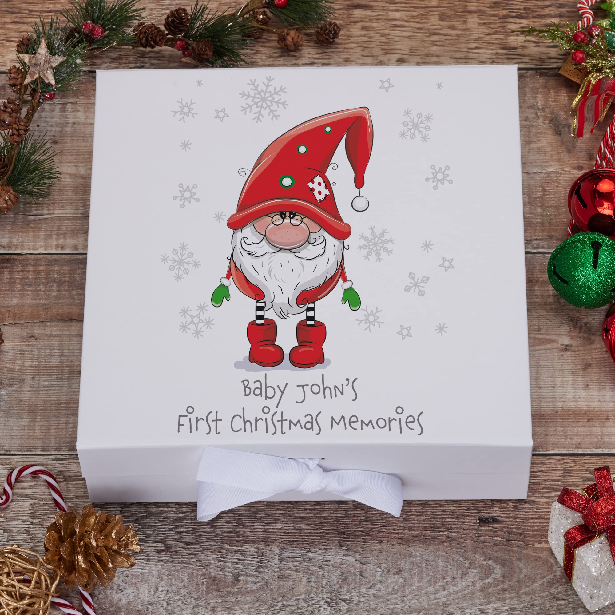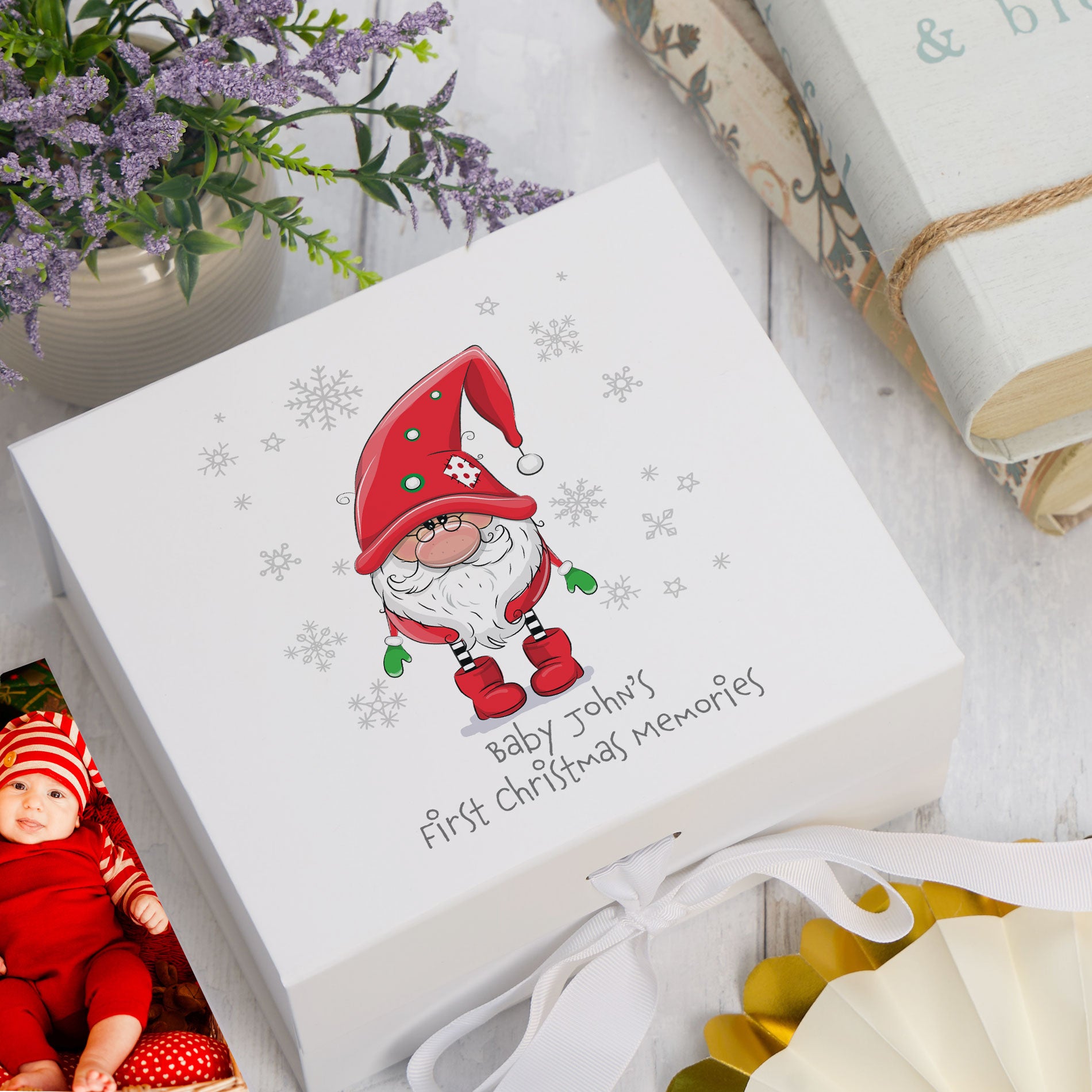 Personalised Baby's First Christmas Keepsake Box With Santa Gnome