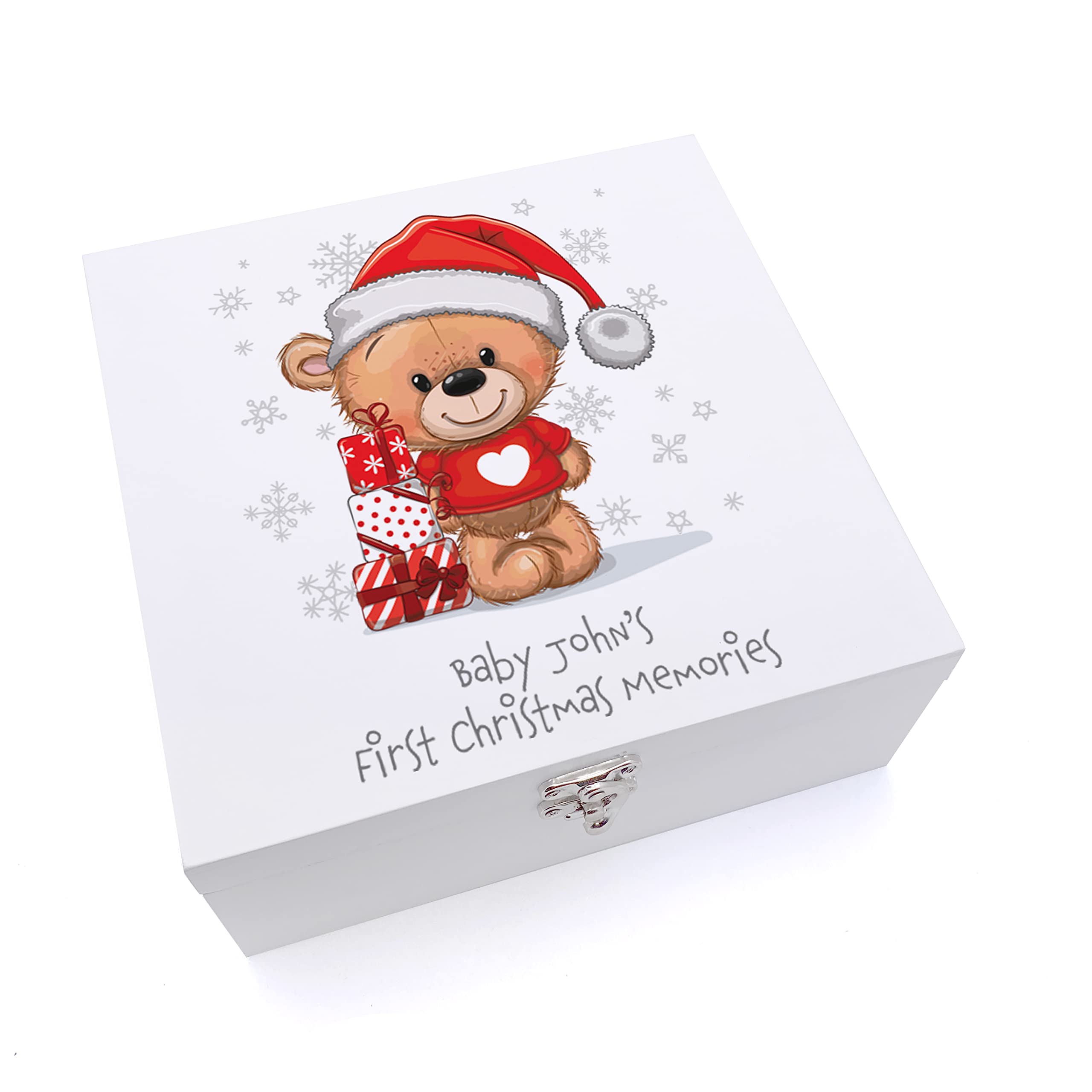 If you are looking for an extra special gift then these keepsake boxes are sure to be cherished and filled with mementos. Perfect to fill with gifts, photos and other bits and bobs. Made from a white coated wood with your details printed directly onto the lid using the latest printing technology. The inside of the box has a natural wood finish. The boxes have beautiful chrome plated metal hinges and clasp to hold shut ensuring they last for years.