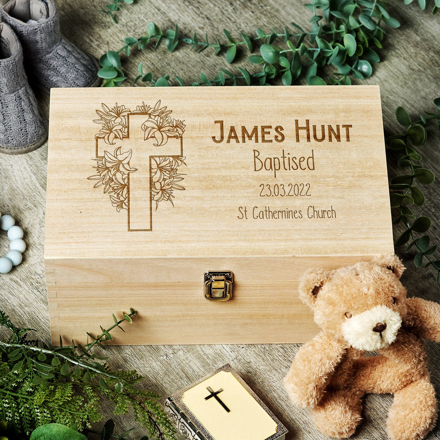 Personalised Baptism Memory Keepsake Box With Floral Cross