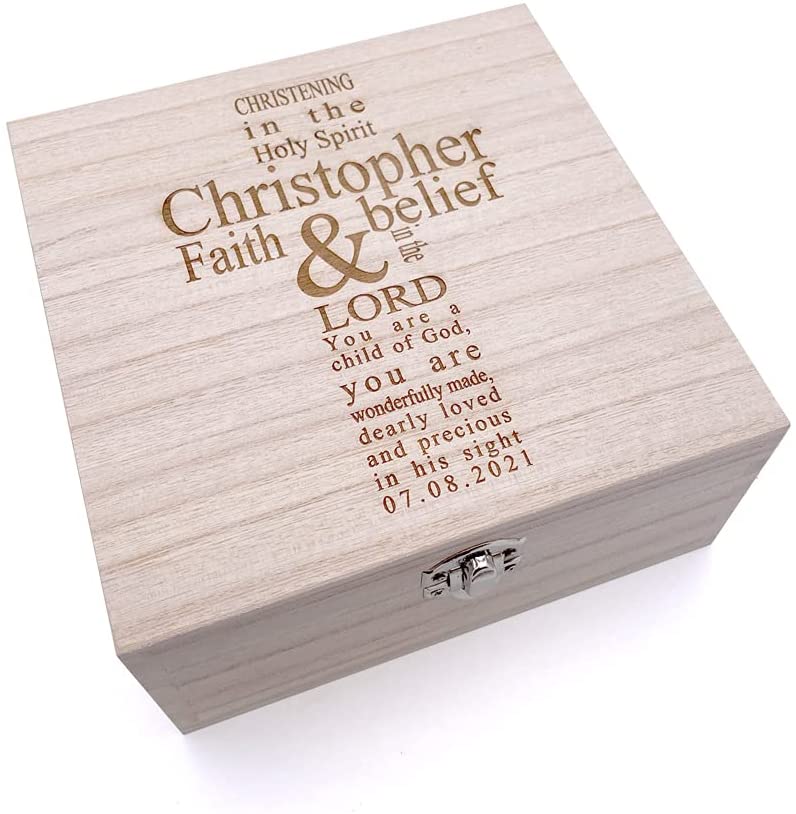 Personalised Christening Keepsake Wooden Memory Box Gift