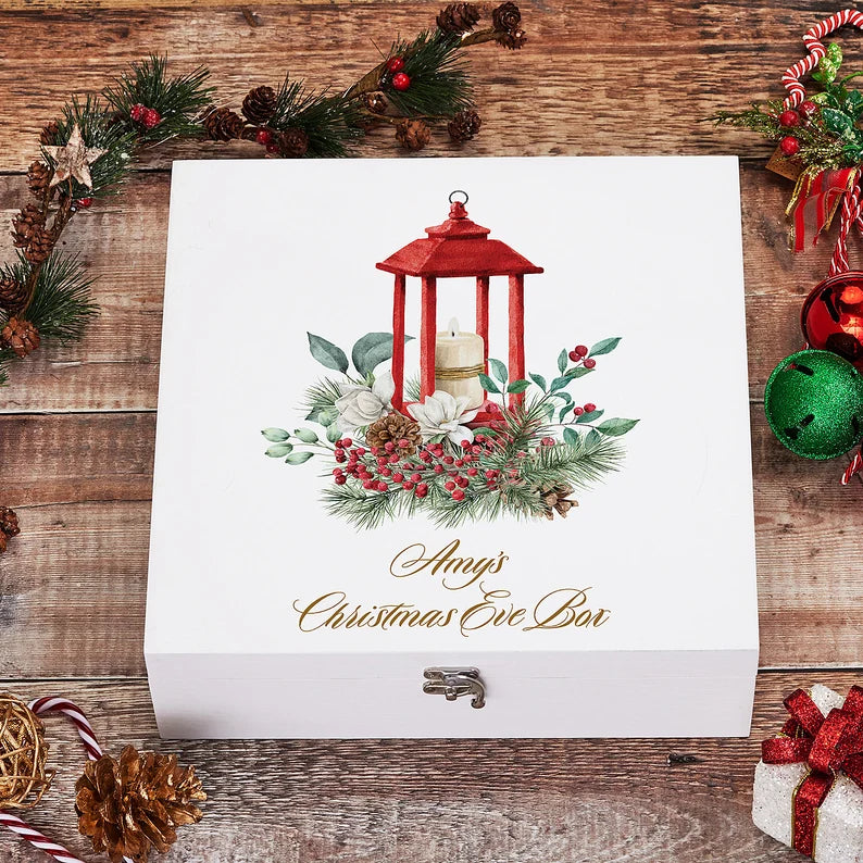Personalised Christmas Eve Wooden Box With a Tea Light Design