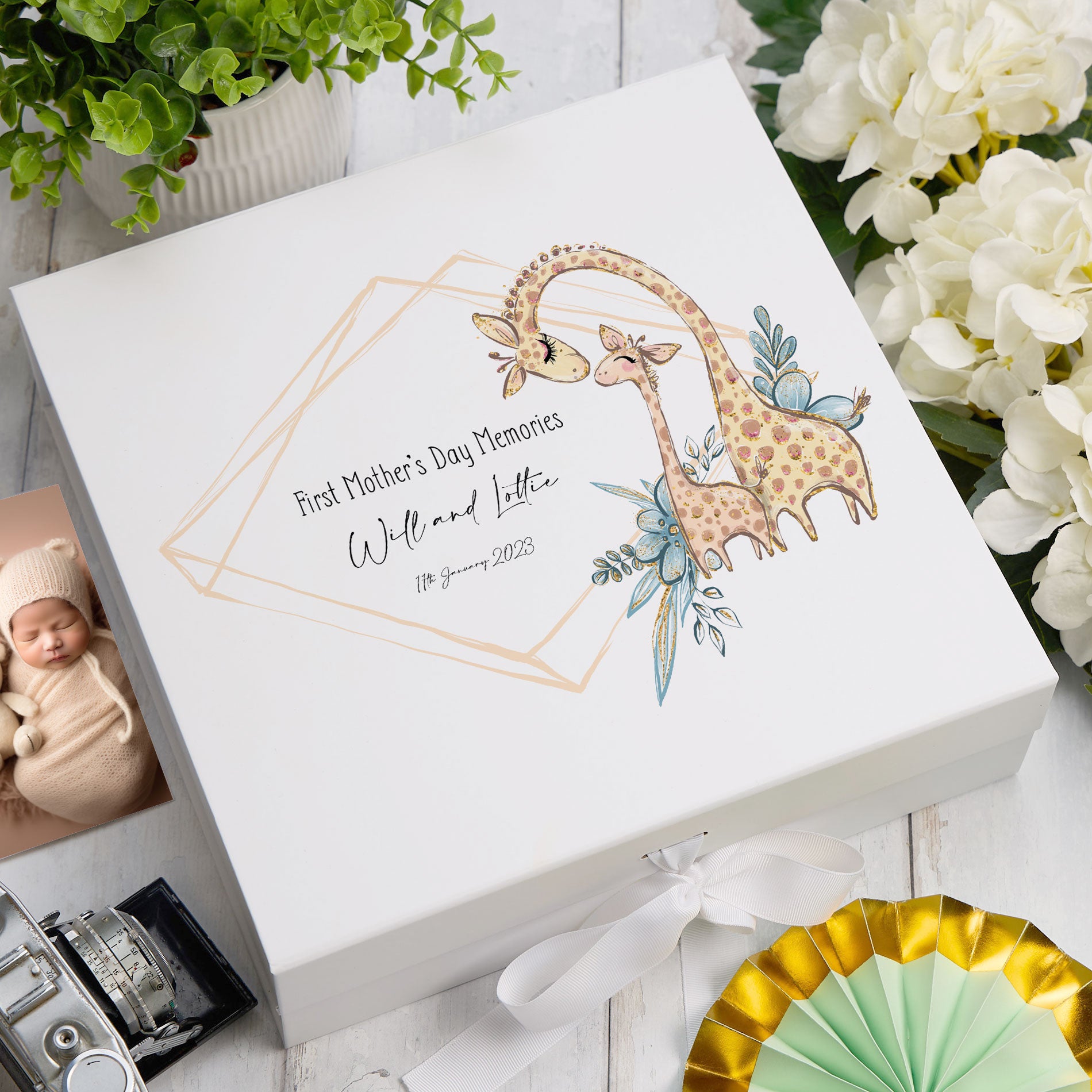 The personalised print on this luxury box is raised slightly to create a stunning embossed-style feature. The box itself is sturdy and durable - made from a luxurious 1200gsm white matt laminated rigid board. Available in two sizes and used as a gift box, as a memory box or as part of a hamper. Medium 17cm x 17cm x 8cm Large 30cm x 30cm x 9cm It can be used as a gift box, as a memory box or as part of a hamper.