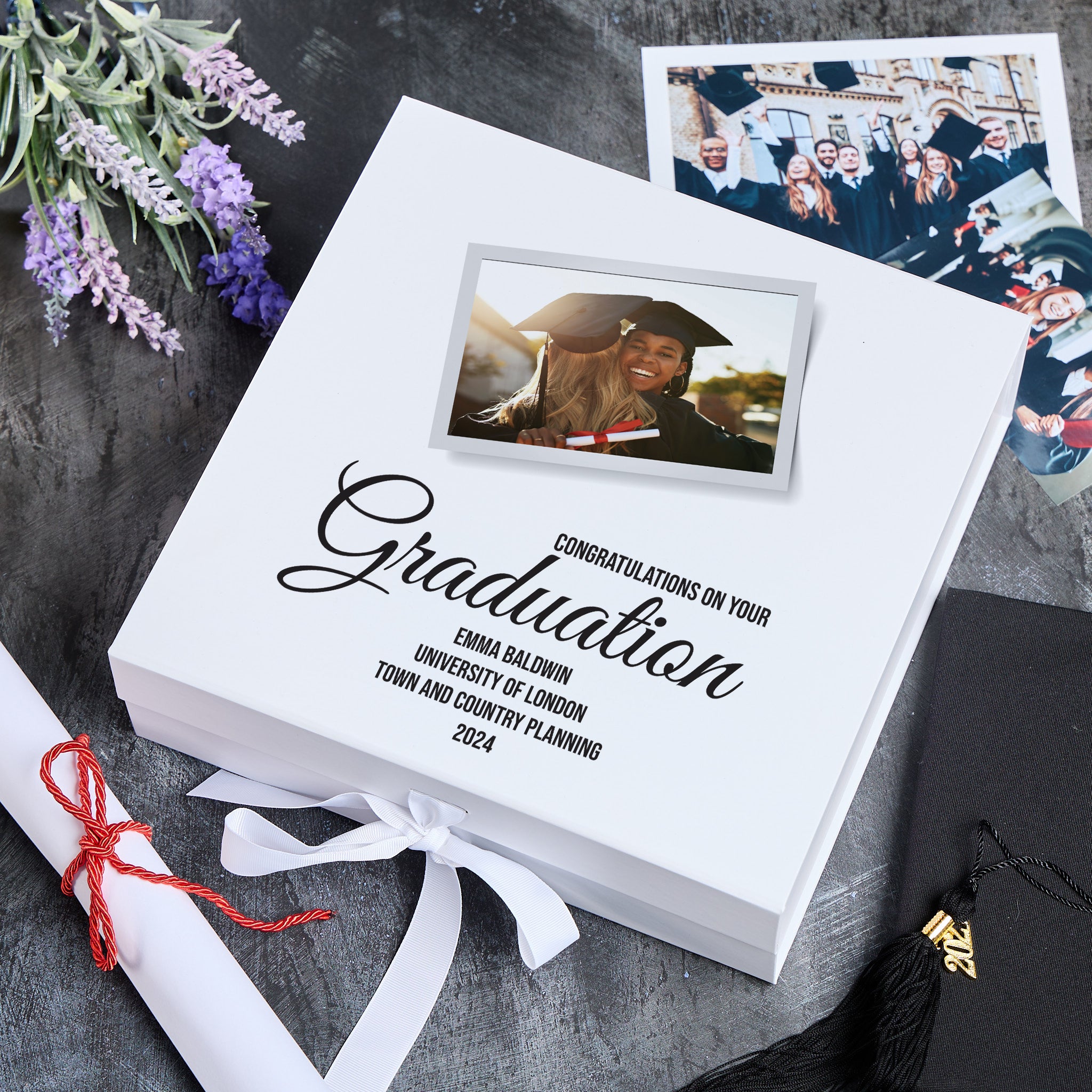 Each keepsake box is personalised on the lid with the name, university and date alongside your own special photo for that occasion.