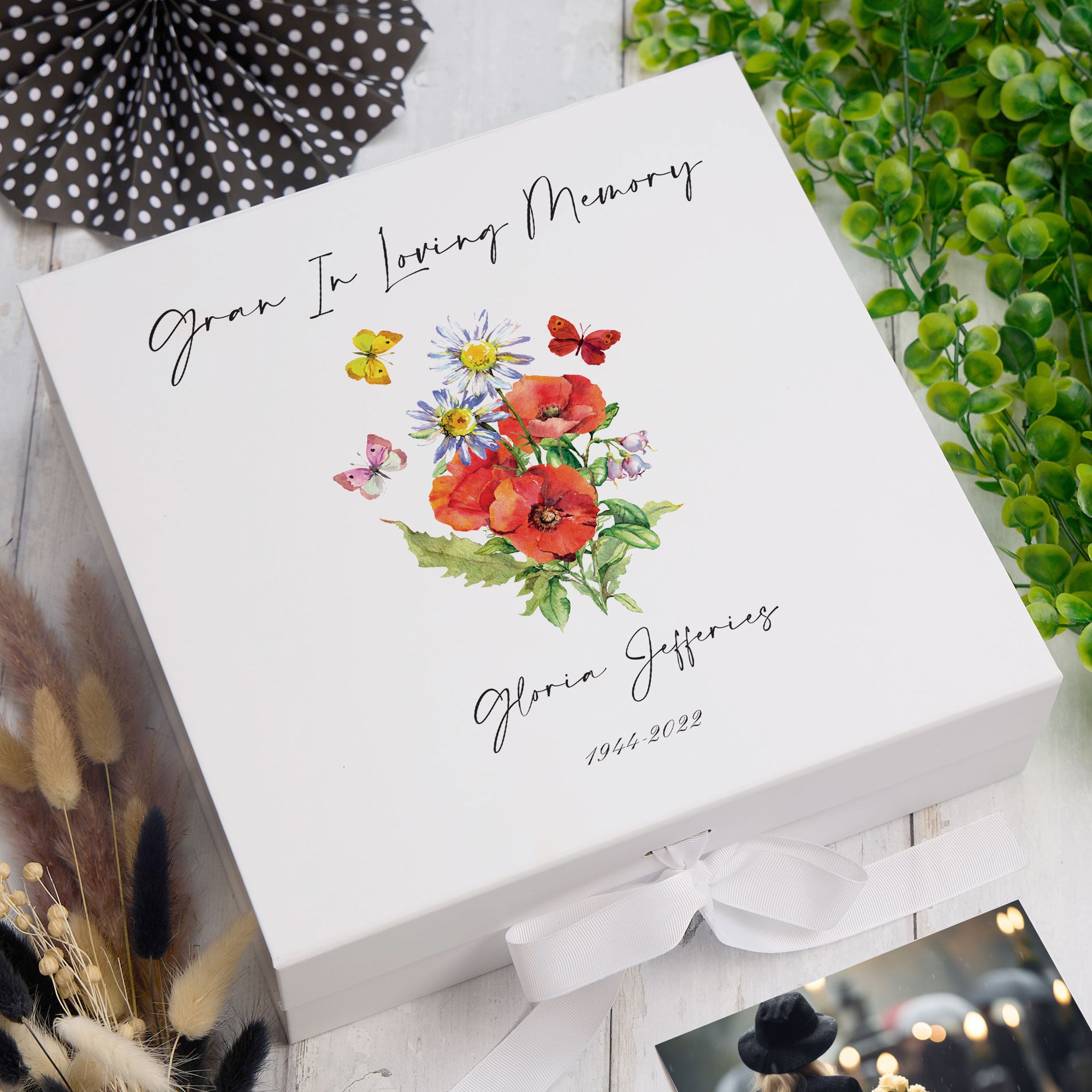 Personalised Gran Remembrance Keepsake Memory Box Butterflies and Flowers