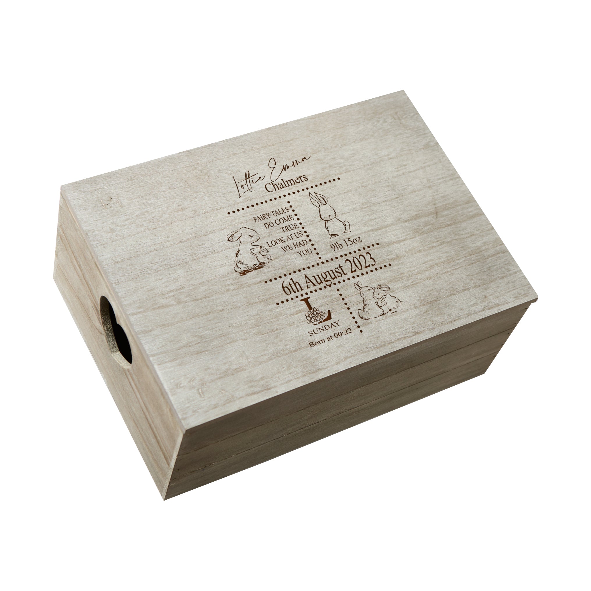 Personalised Large Baby Boy Or Girl Keepsake Crate Box With Rabbits