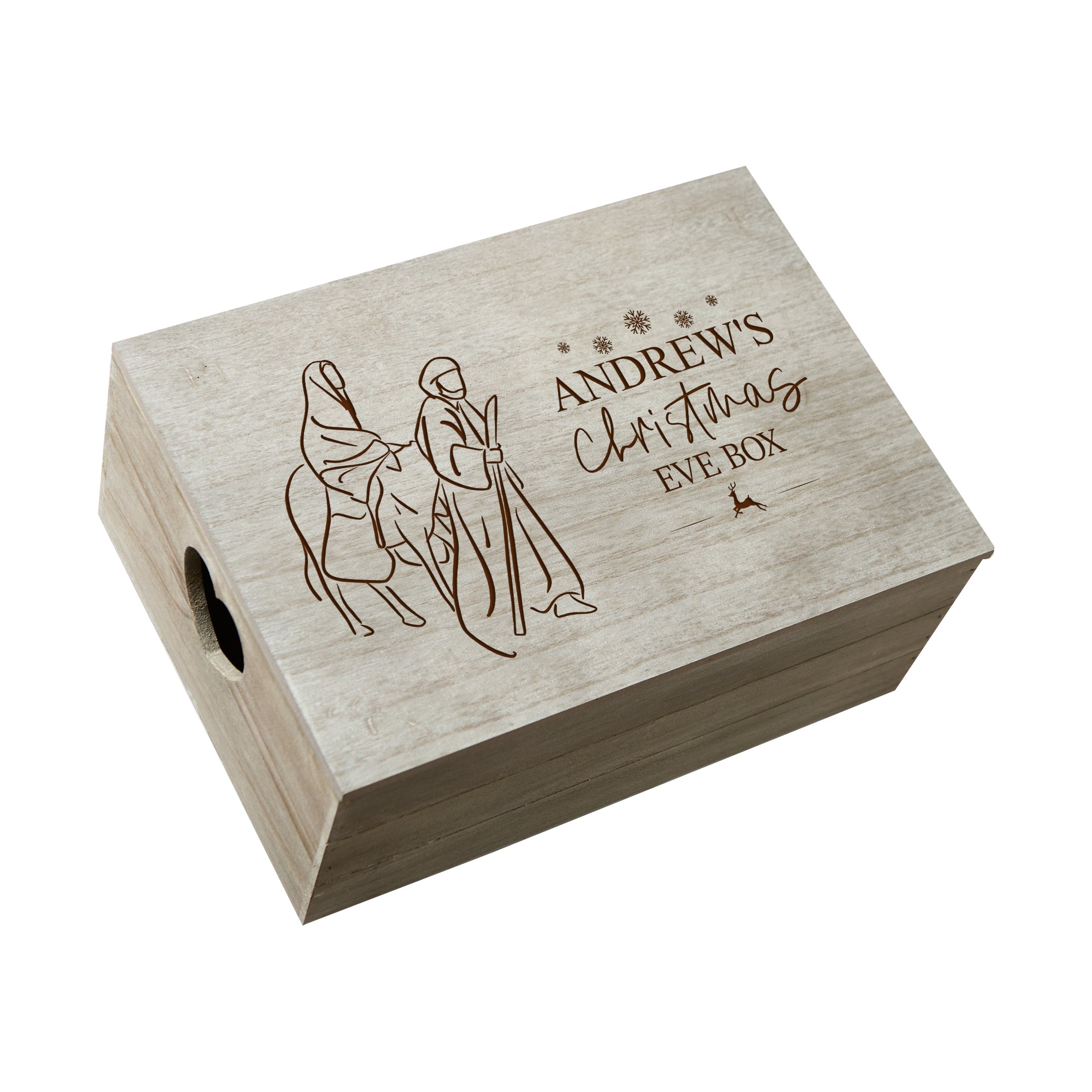 Crafted from premium wood, our Christmas Eve Crate Keepsake Box with Snowman provides an unparalleled way to store precious items. Expertly made, its two parts easily open, allowing for both storage and display. The box measures 35 cm x 25 cm x 15 cm and includes a laser engraving of your desired personalisation. Simply add your message at checkout and enjoy the festive season.