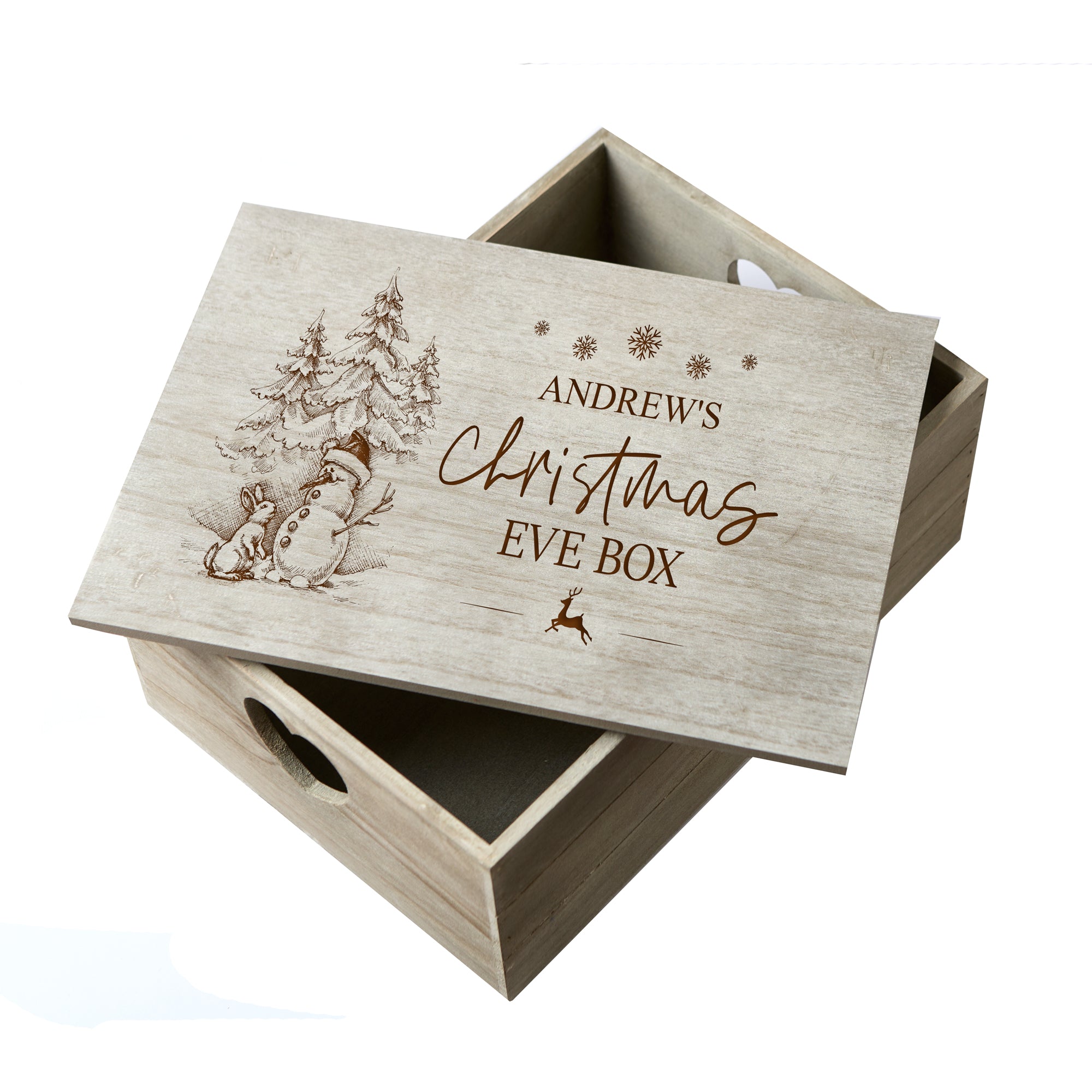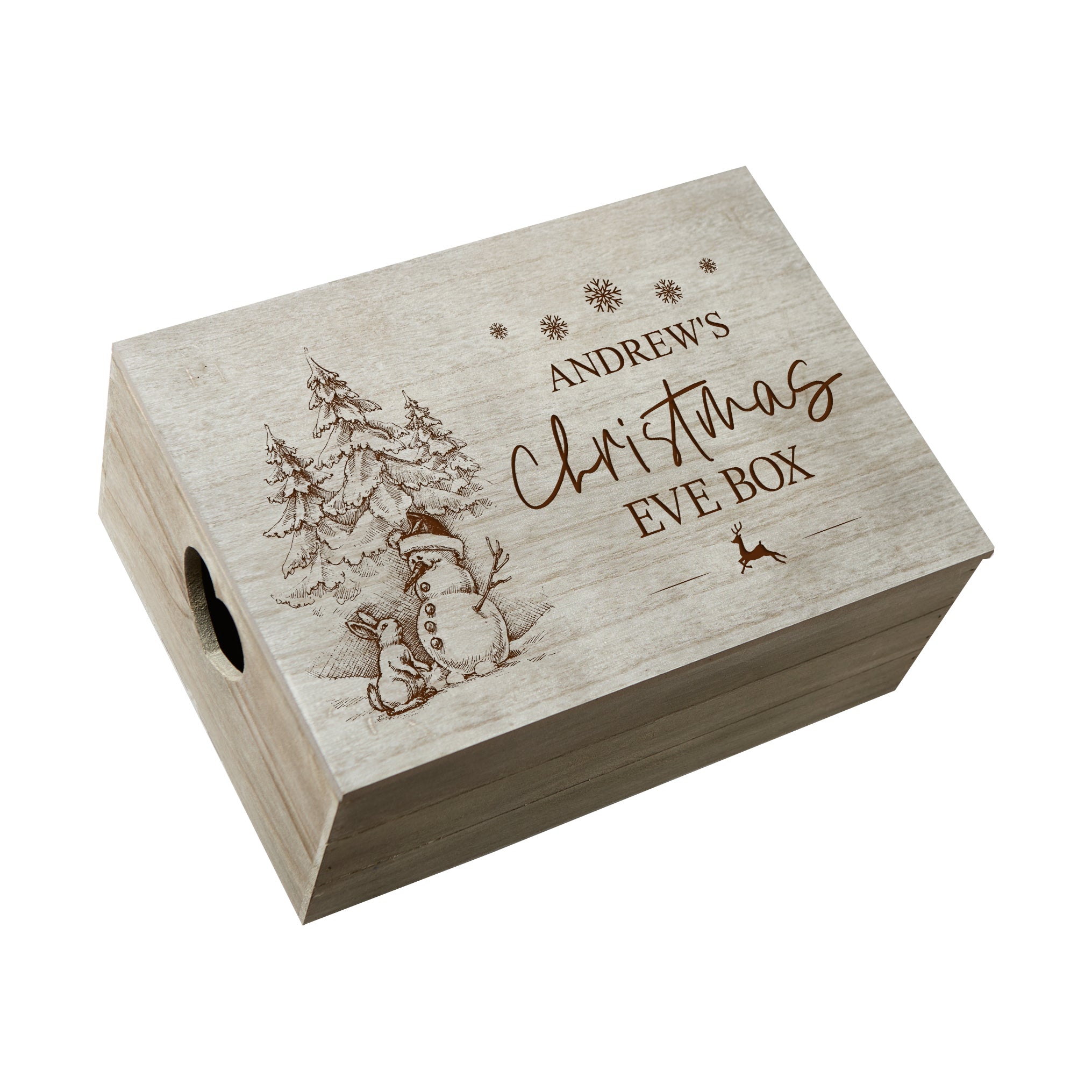 Personalised Large Christmas Eve Crate Keepsake Box With Snowman