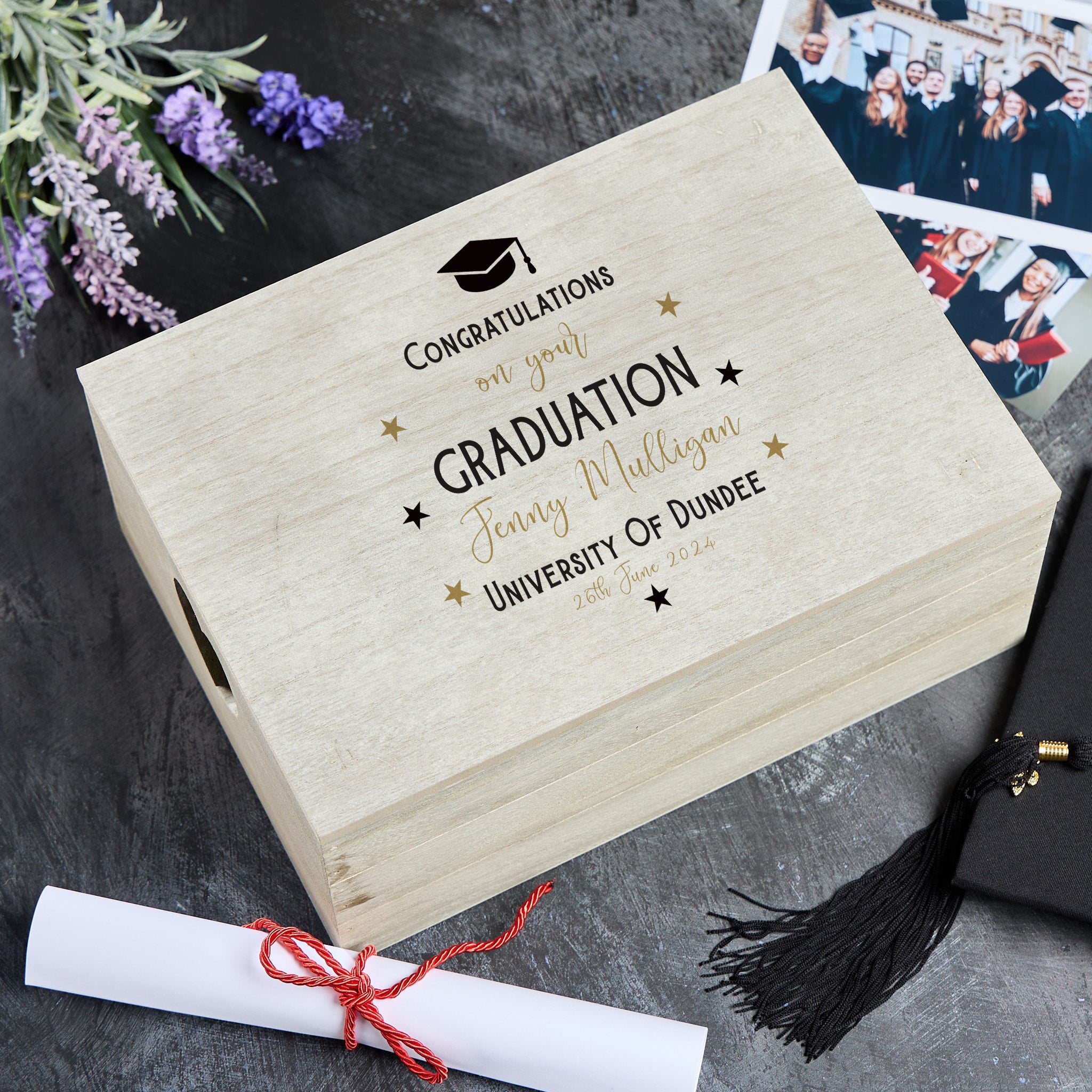 Personalised Large Vintage Graduation Keepsake Box With Stars and Hat