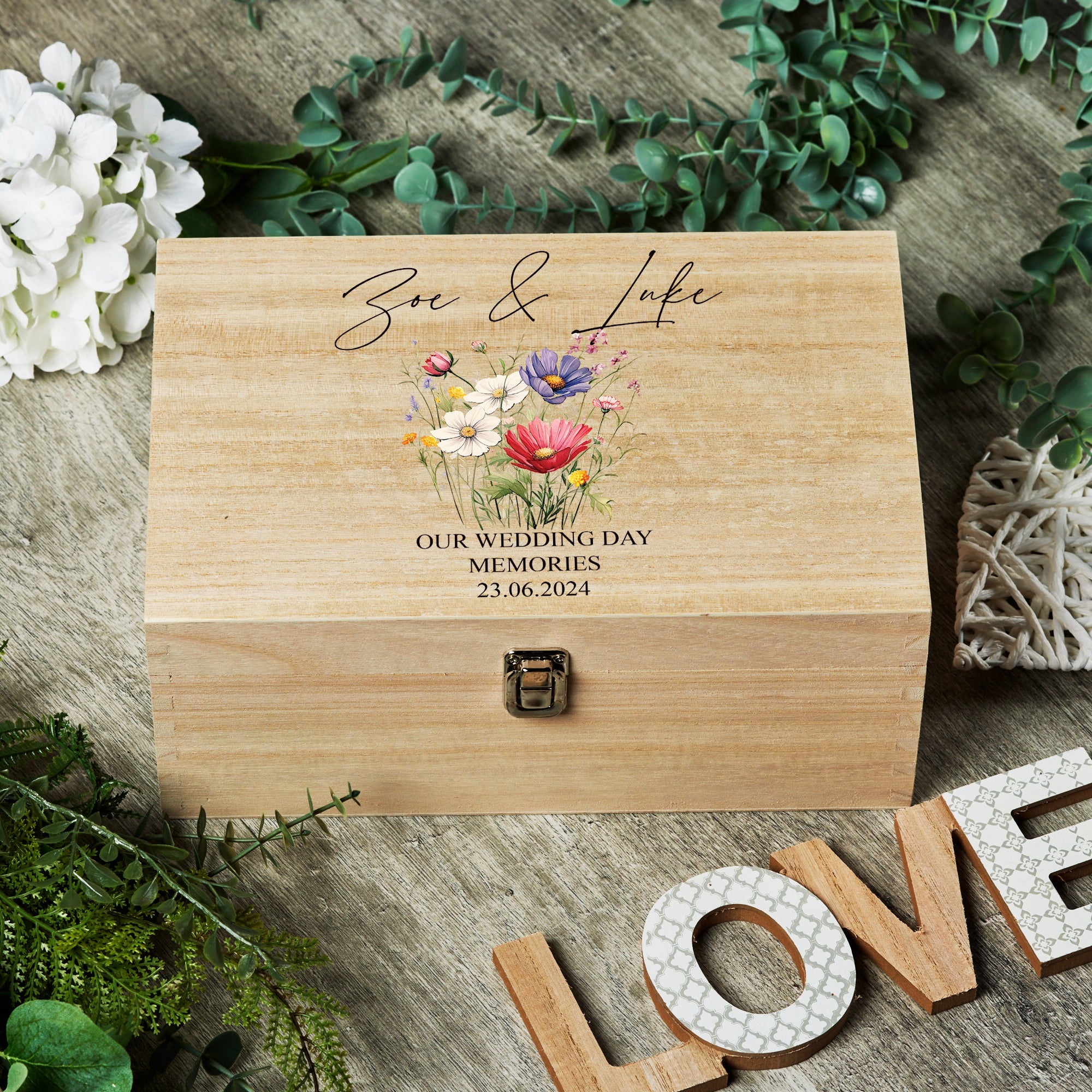 Personalised Large Wedding Memories Keepsake Box With Beautiful Flowers