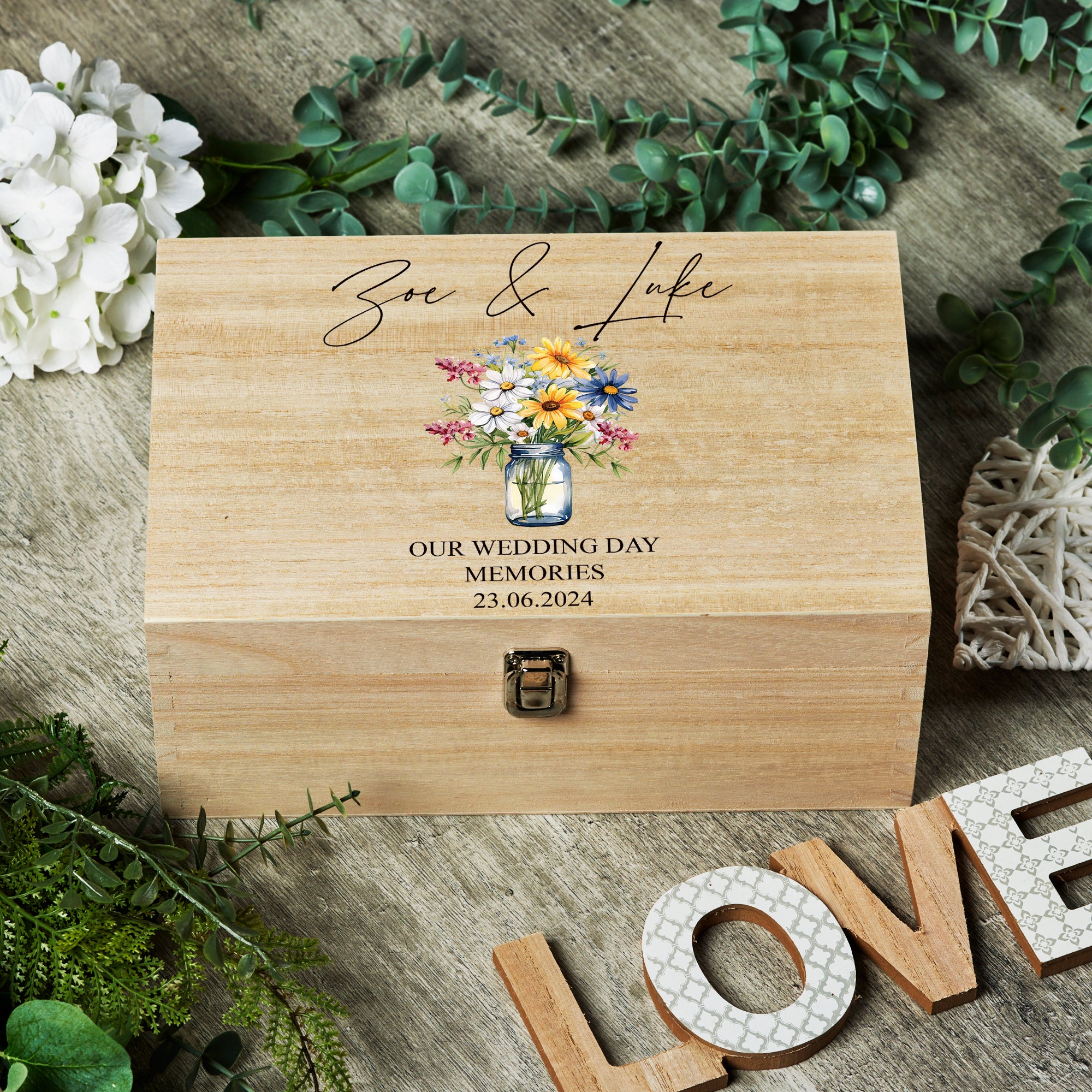 Personalised Large Wedding Memories Keepsake Box With Mixed Flower Vase