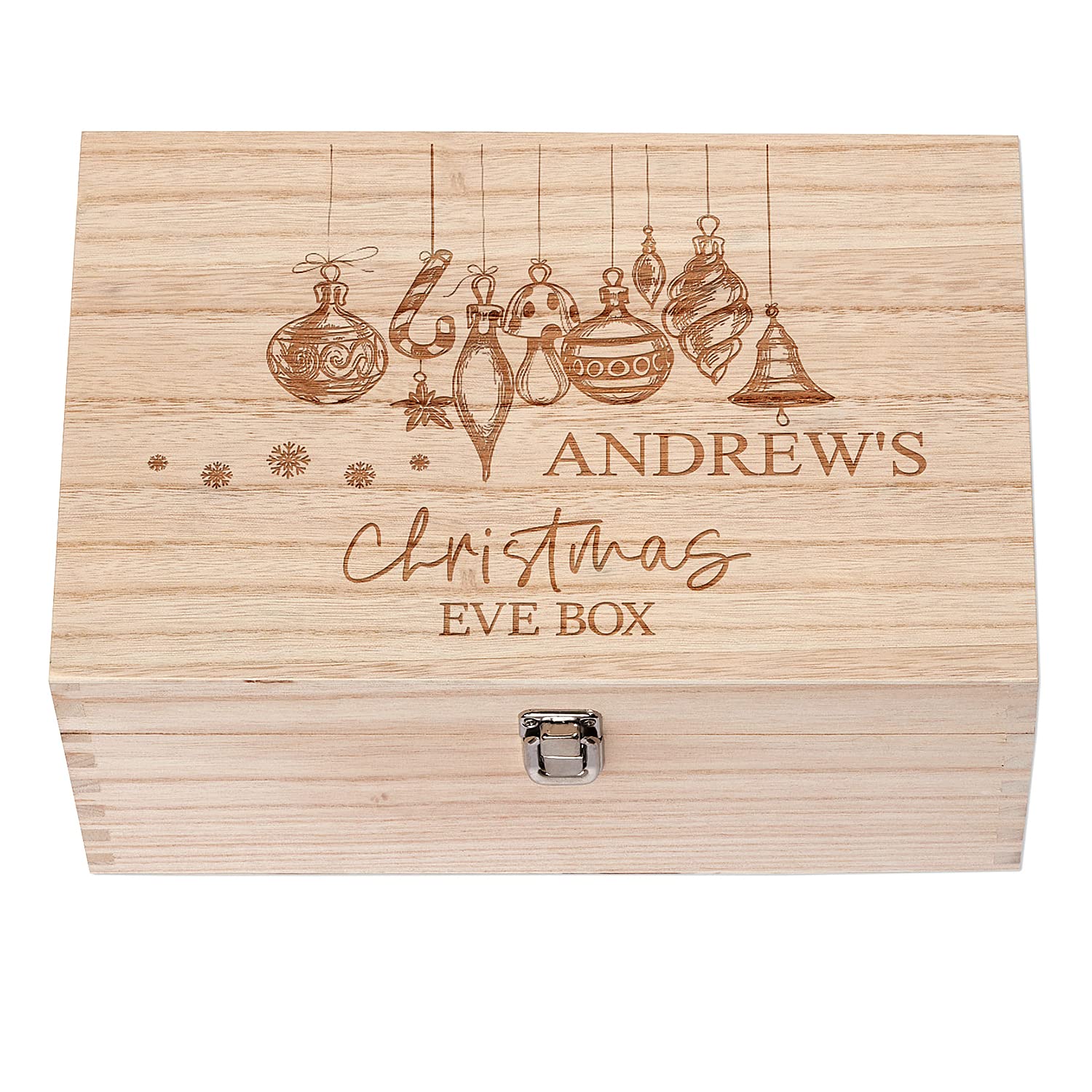 Personalised Large Wooden Christmas Eve Box With Bauble Design