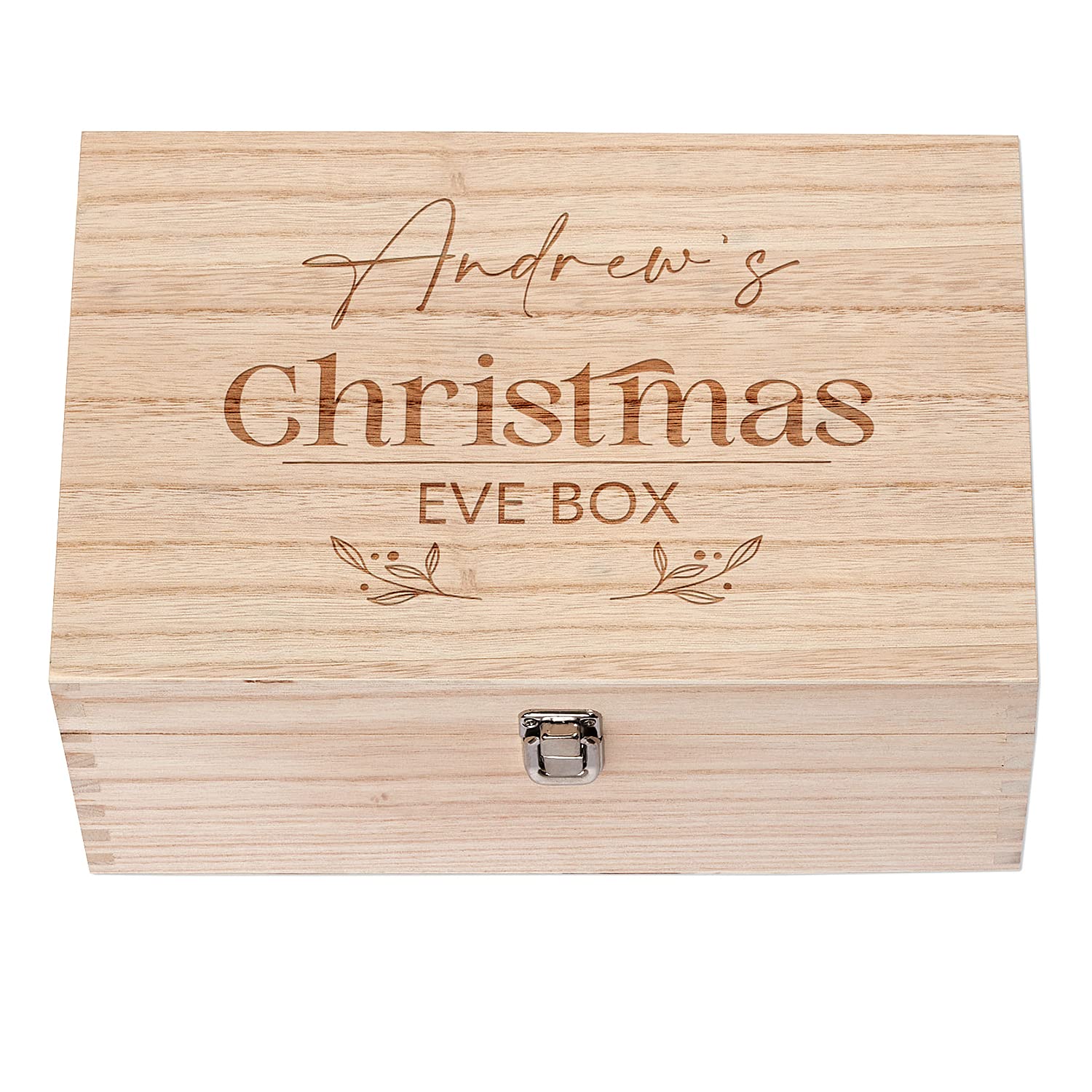 Made from wood this box is an ideal way to store those important keepsakes. The box is hinged for easy opening and comes with a clip closure. Dimensions: 30 x 20 x 13 cm (11.8 x 7.9 x 5.1 inches) The personalisation is done with a laser engraver directly onto the wood giving it a lovely finish ENGRAVING INSTRUCTIONS