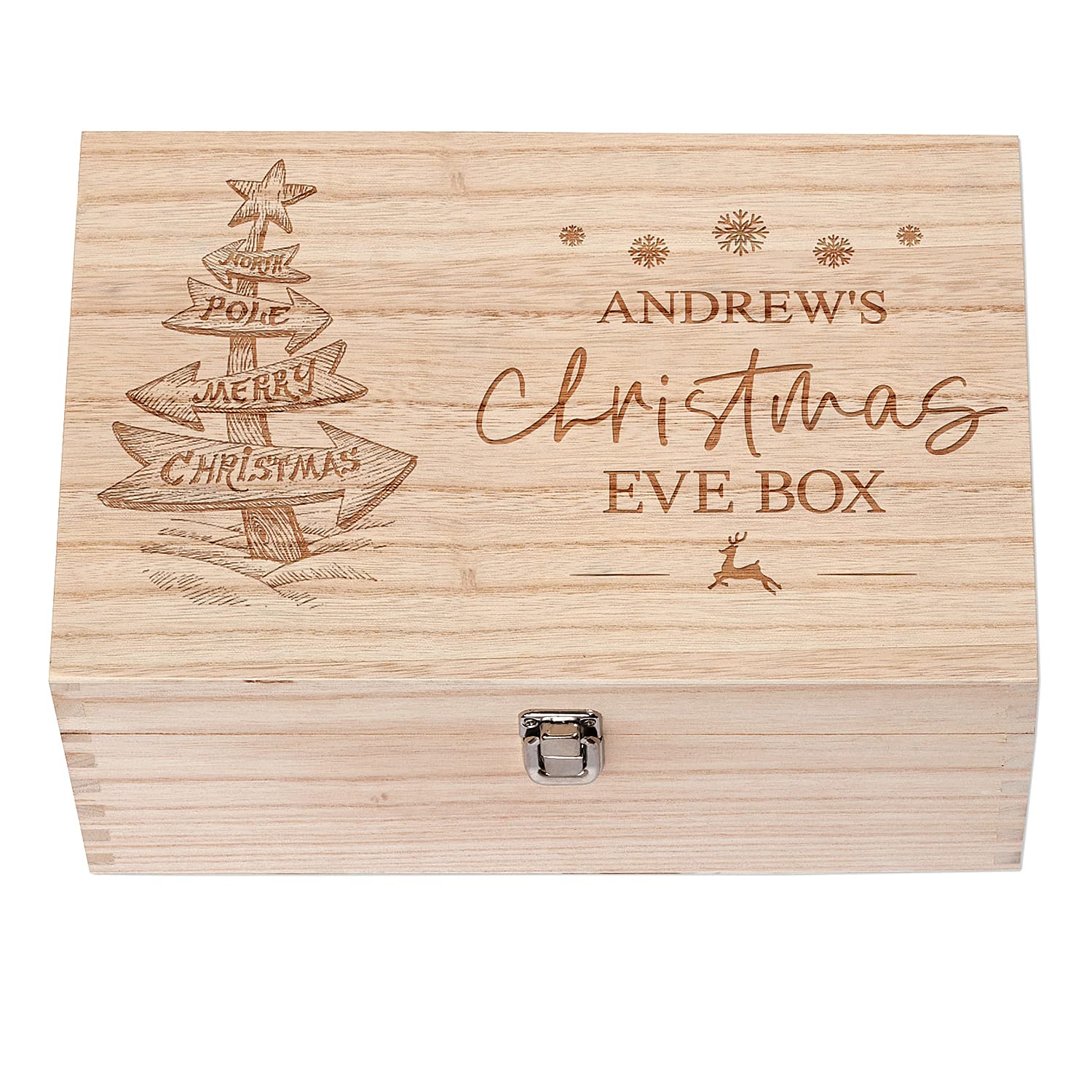 Personalised Large Wooden Christmas Eve Box With North Pole Sign