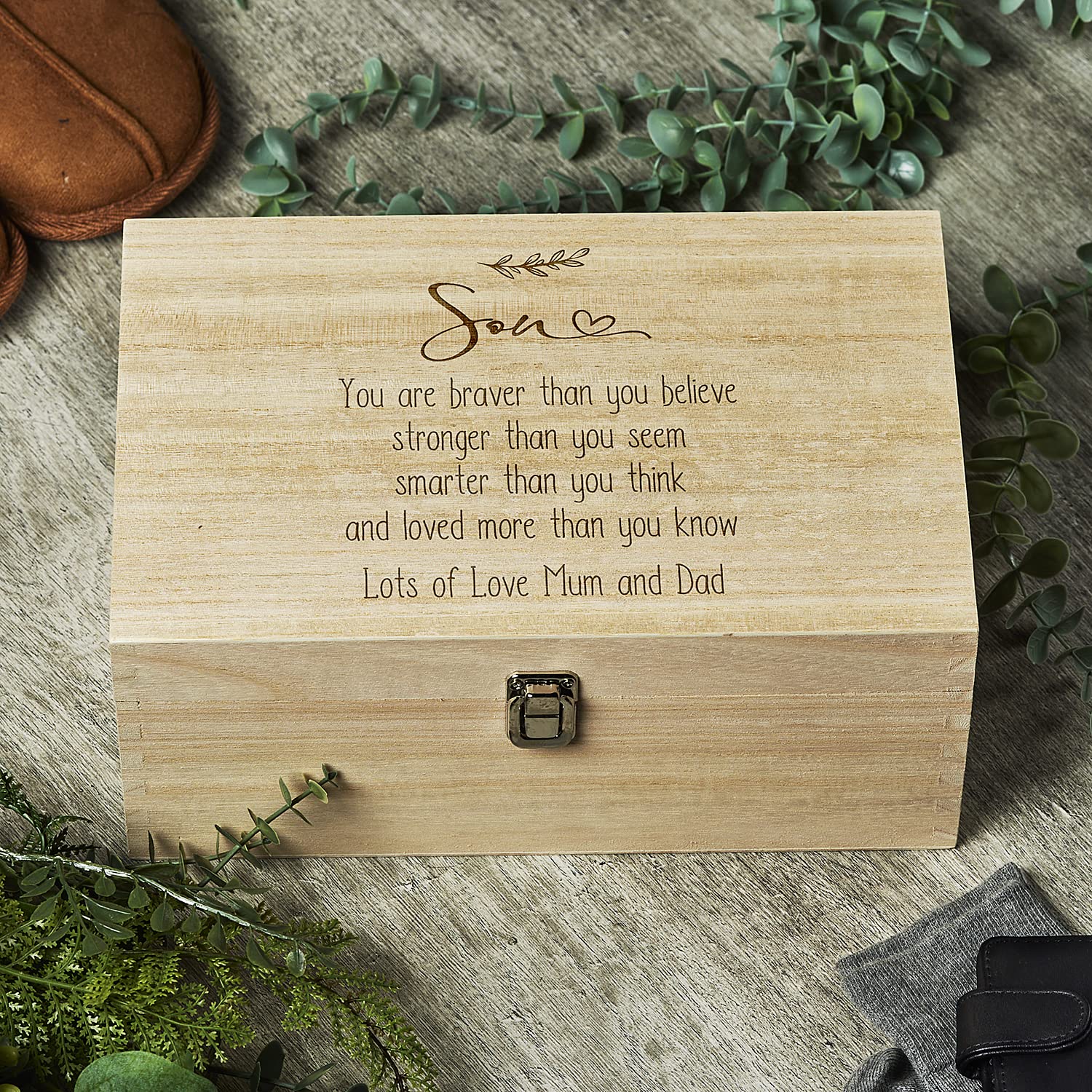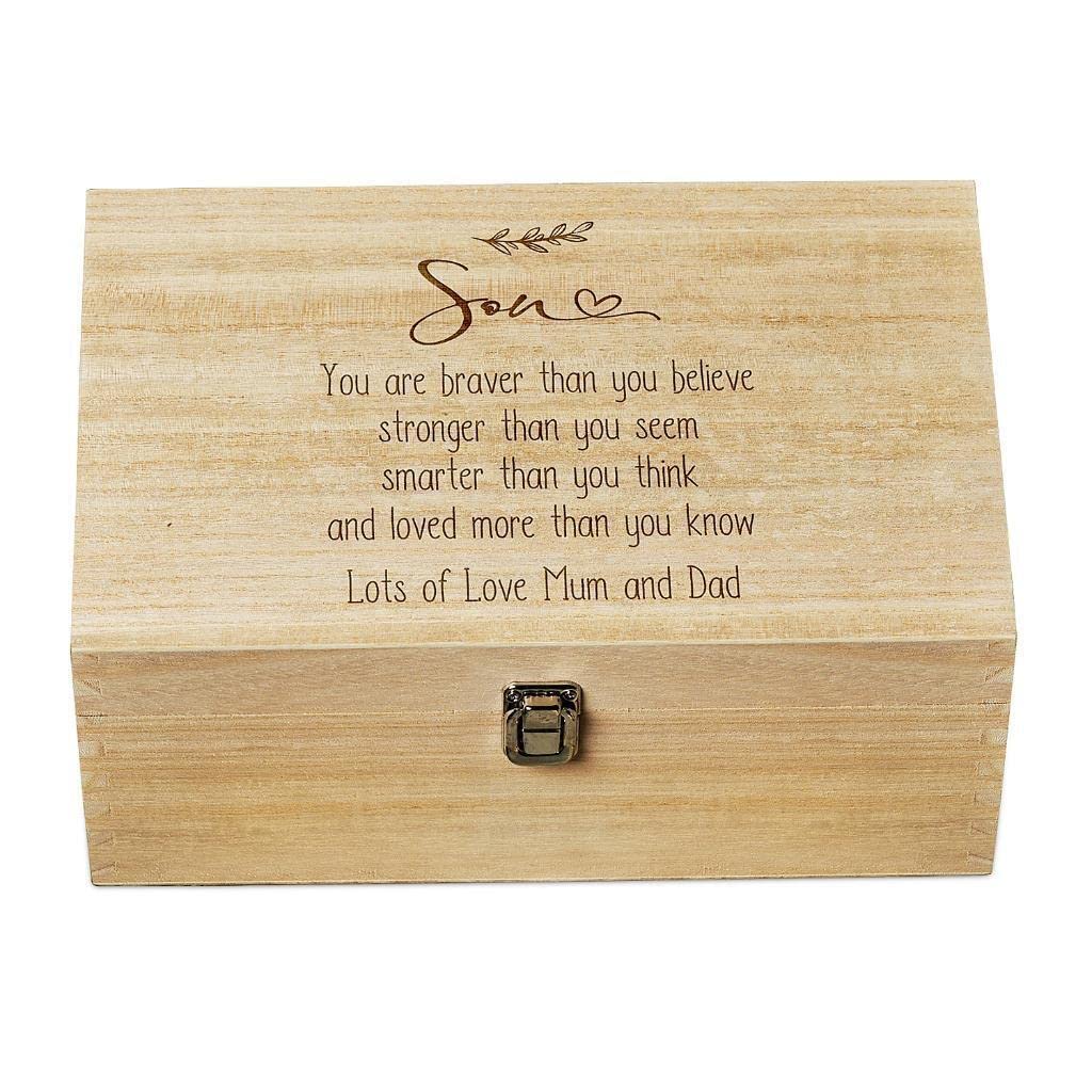 This personalised keepsake box is an everlasting memory for your son. Made from wood this box is...
