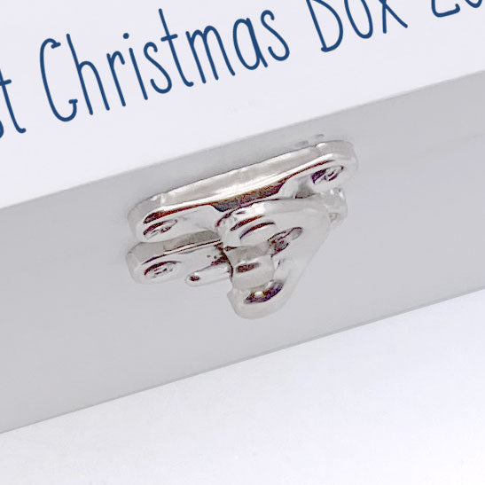 A contemporary luxury white wooden memory box, personalised for the occasion, whether it be a Christmas Eve Box, Baby's First Christmas or Daddy's Christmas box, this can be customized to your liking.