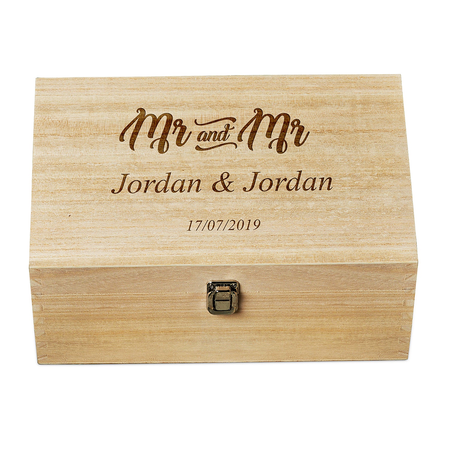 Personalised Mr & Mr Wedding Gift Same Sex Wooden Memories Keepsake Box - ukgiftstoreonline
