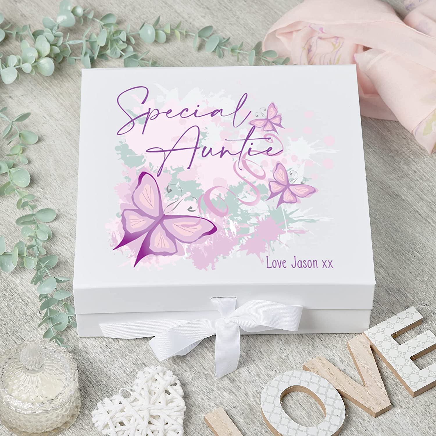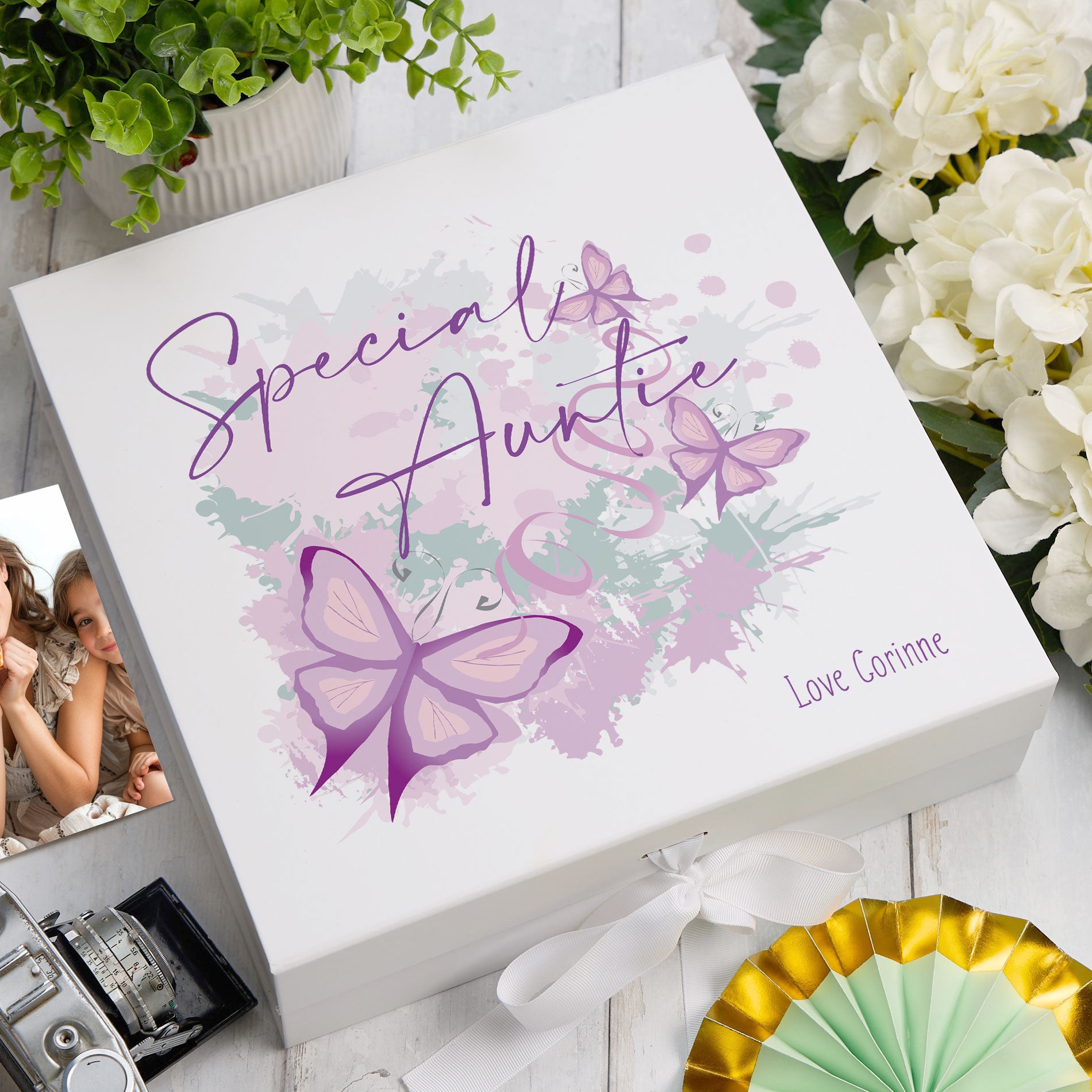 Personalised Special Auntie Pink & Purple Butterfly Gift Keepsake Memory Box