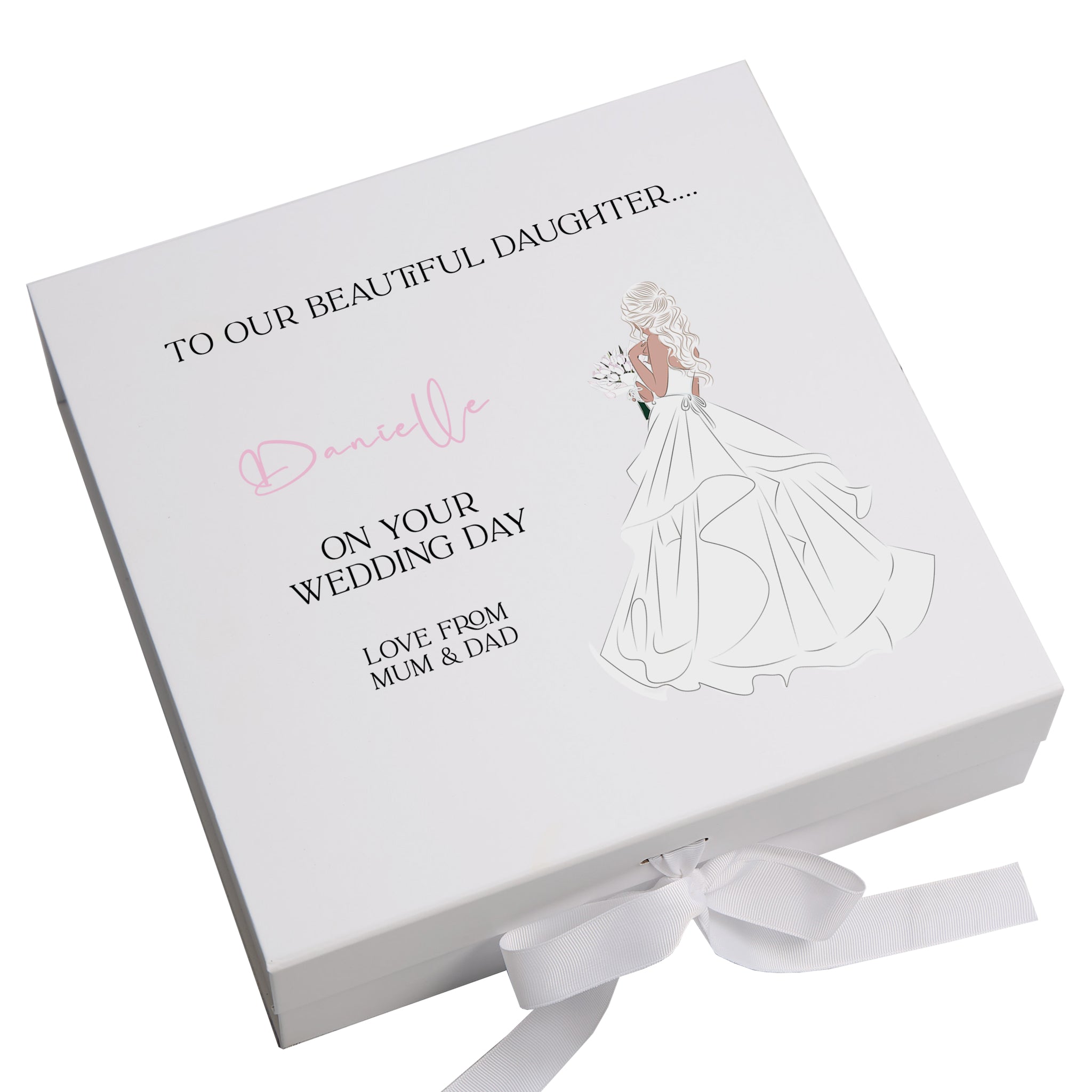 This wedding day keepsake box is specialised for personalisation and storage of all your cherished items from your customised wedding day. With a size of 19cm x 17cm x 8cm, it's the perfect versatile option for gifting, storing, or adding to a special wedding hamper. Make your wedding memories truly unforgettable with our personalised keepsake box.