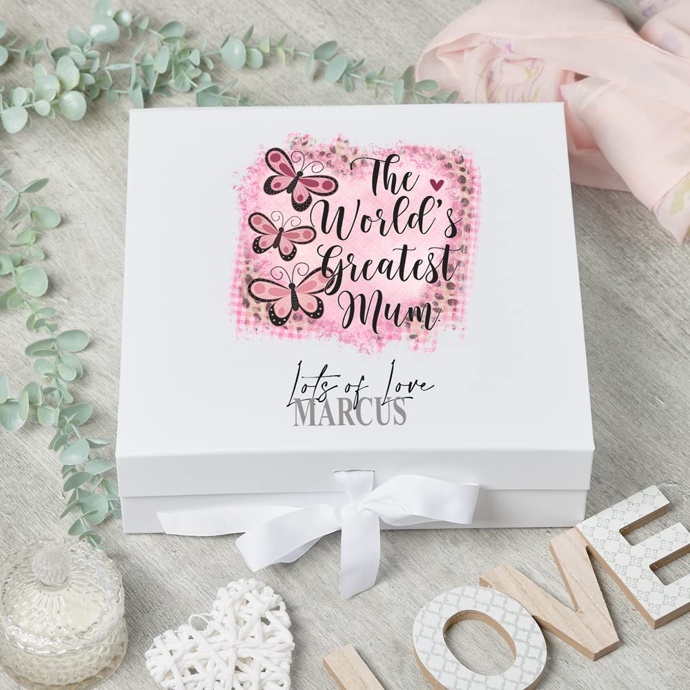 The personalised print on this luxury box is raised slightly to create a stunning embossed-style feature. The box itself is sturdy and durable - made from a luxurious 1200gsm white matt laminated rigid board. Available in two sizes and used as a gift box, as a memory box or as part of a hamper. Medium 17cm x 17cm x 8cm Large 30cm x 30cm x 9cm It can be used as a gift box, as a memory box or as part of a hamper.