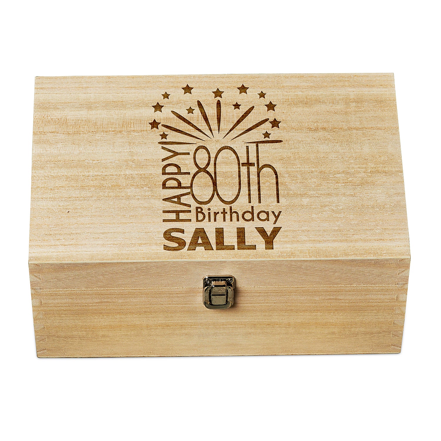 80th Birthday Gift Personalised Large wooden Keepsake Box Gift