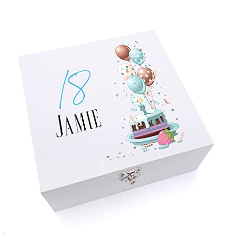 A contemporary luxury white wooden memory box, personalised with a name. If you are looking for an extra special gift then these keepsake boxes are sure to be cherished and filled with mementos. Perfect to fill with gifts, photos and other bits and bobs. Made from a white coated wood with your details printed directly onto the lid using the latest printing technology. The inside of the box has a natural wood finish. The boxes have beautiful chrome plated metal hinges and clasp to hold shut ensuring they last for years. Dimensions: H8 x W20 x D20cm TO PERSONALISE THIS ITEM,