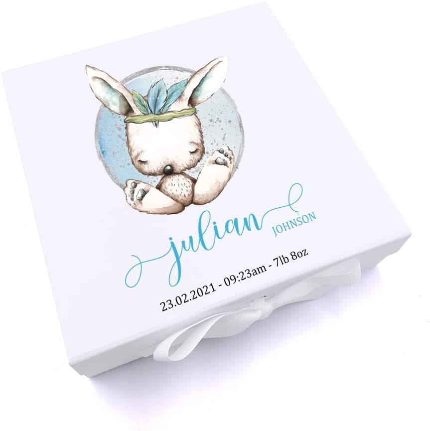 ukgiftstoreonline Personalised Baby Boy Gift Keepsake Memory Box Sitting Rabbit