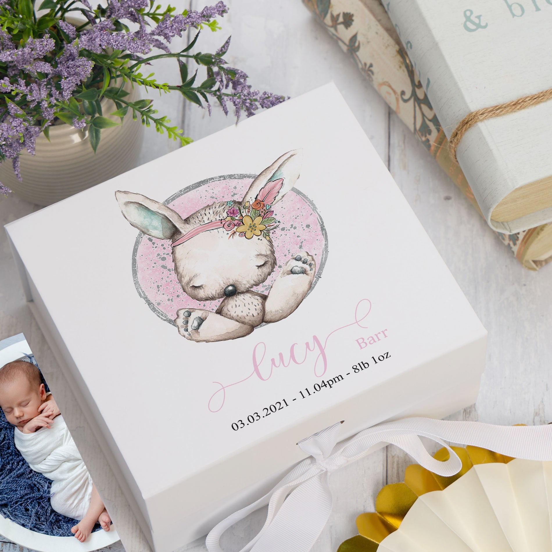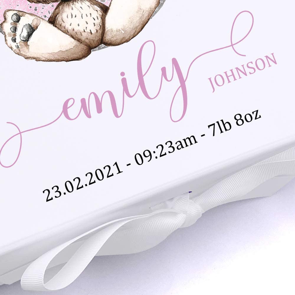 The personalised print on this luxury box is raised slightly to create a stunning embossed-style feature. The box itself is sturdy and durable - made from a luxurious 1200gsm white matt laminated rigid board. Available in two sizes and used as a gift box, as a memory box or as part of a hamper. Medium 17cm x 17cm x 8cm Large 30cm x 30cm x 9cm It can be used as a gift box, as a memory box or as part of a hamper.