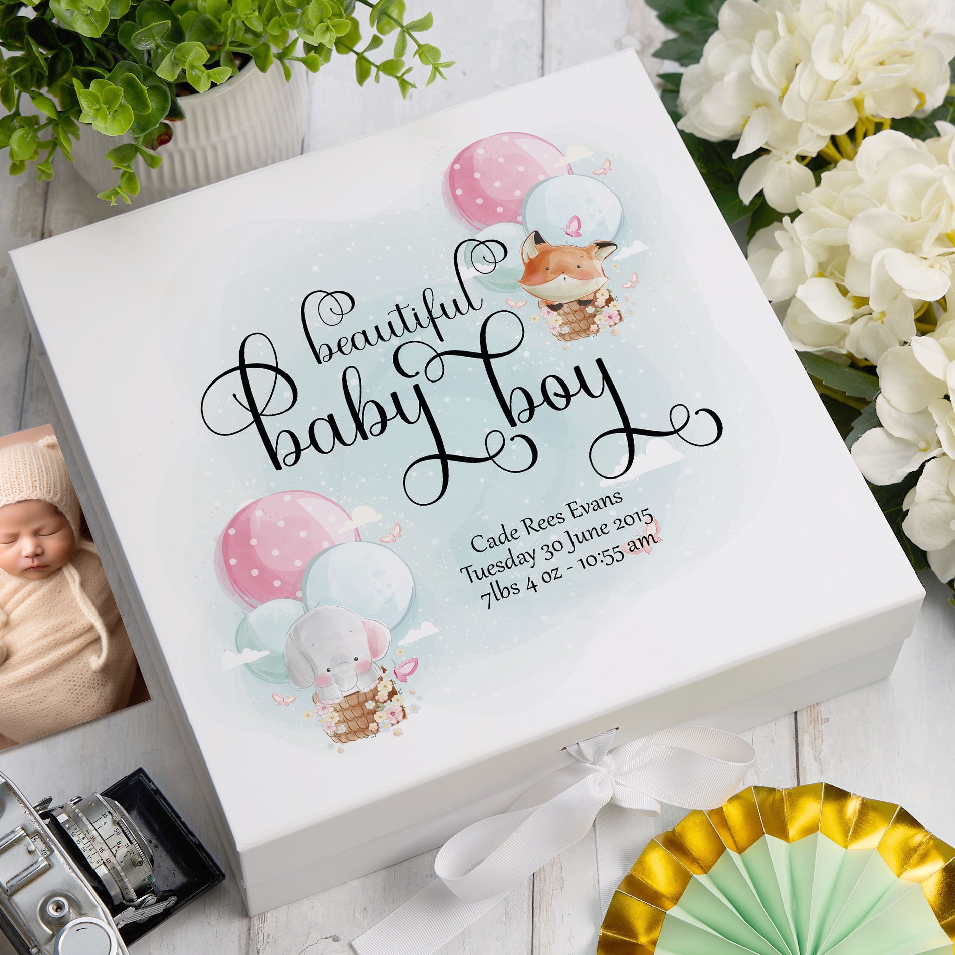 Personalised Baby Boy Memory Box Gift With Ribbon Balloon Design Gorgeous luxury personalised printed rigid card gift...