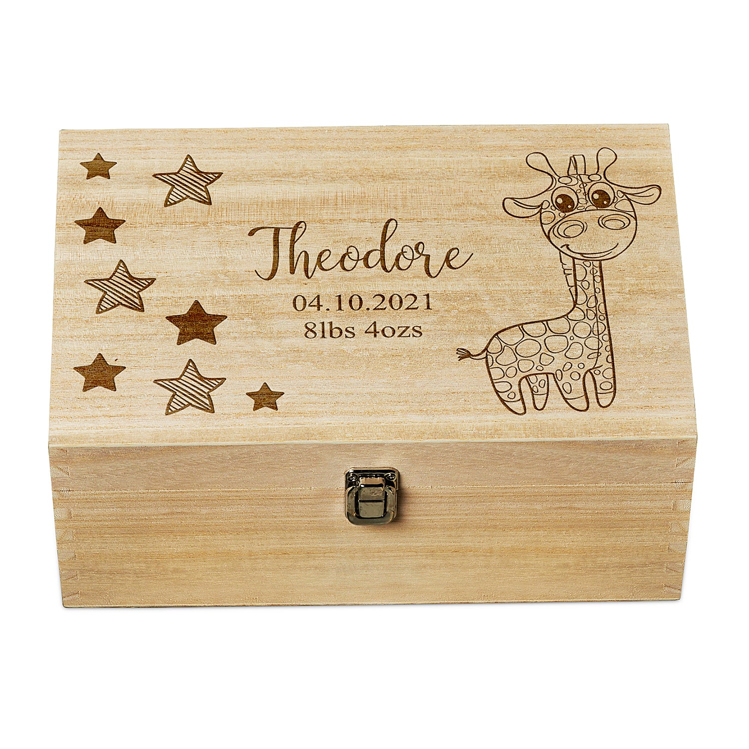 Made from wood this box is an ideal way to store those important bits. The box is hinged for easy opening and comes with a clip closure. Dimensions: 30 x 20 x 13 cm (11.8 x 7.9 x 5.1 inches) The personalisation is done with a laser engraver directly onto the wood giving it a lovely finish.