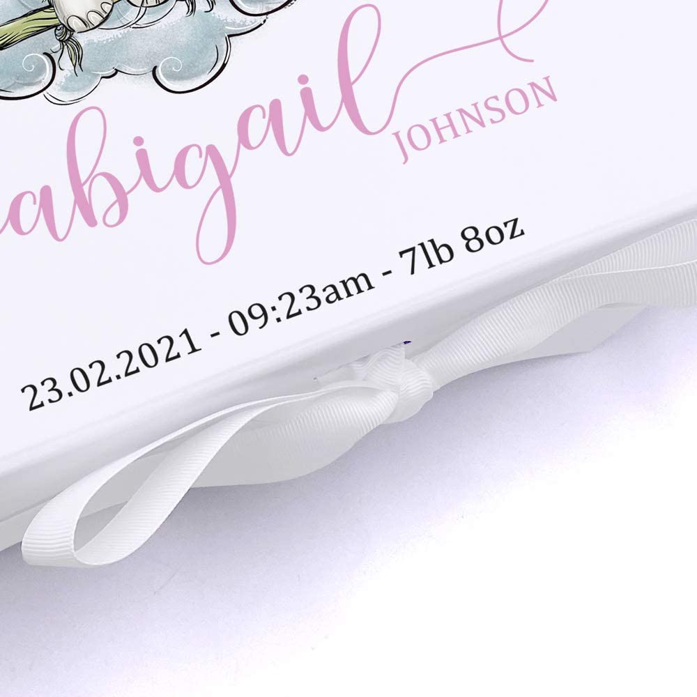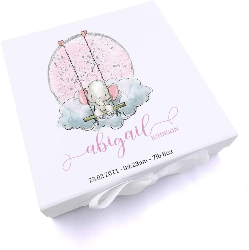 A charming keepsake box designed to treasure precious moments from your baby girl's earliest years. This thoughtfully crafted memory box features a delightful elephant-on-swing illustration, creating a whimsical focal point. Personalisation transforms it into a one-of-a-kind heirloom, perfect for storing first photographs, hospital bracelets, locks of hair, and other sentimental mementos. An ideal gift for new parents seeking a meaningful way to preserve their daughter's milestones and cherished memories for generations to come.