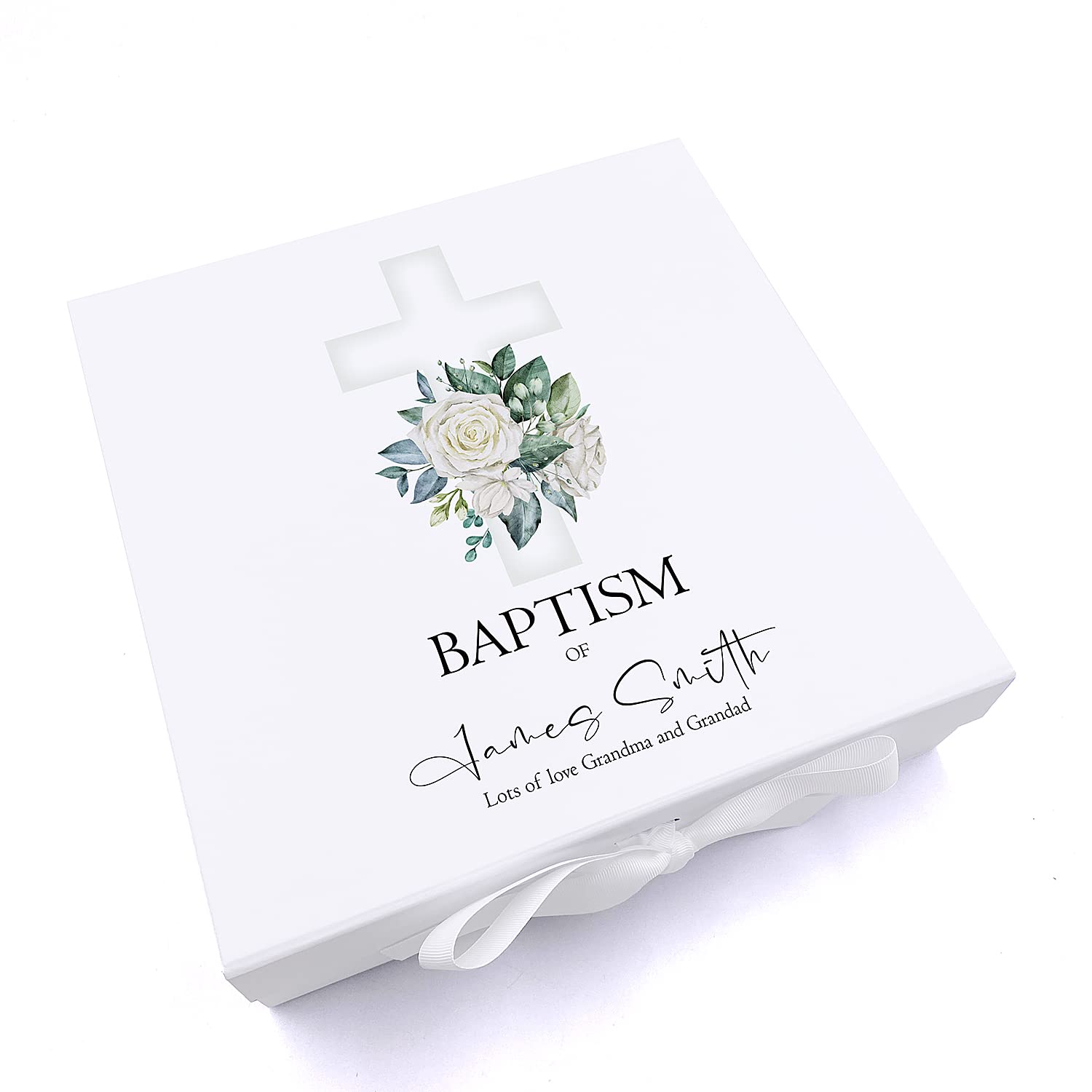 The personalised print on this luxury box is raised slightly to create a stunning embossed-style feature. The box itself is sturdy and durable - made from a luxurious 1200gsm white matt laminated rigid board. Available in two sizes and used as a gift box, as a memory box or as part of a hamper. Medium 17cm x 17cm x 8cm Large 30cm x 30cm x 9cm It can be used as a gift box, as a memory box or as part of a hamper.