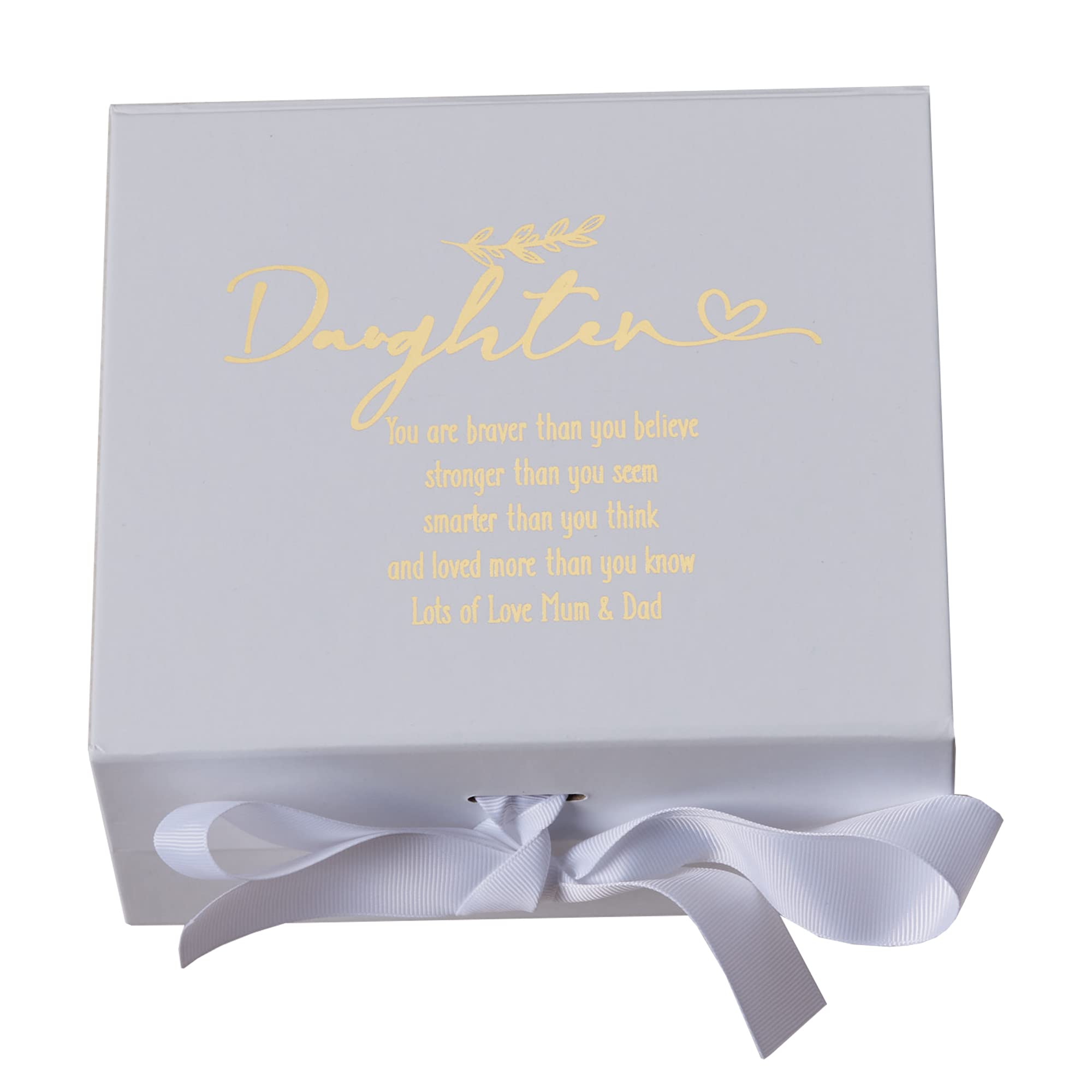 Minimalist yet meaningful - White Personalised Daughter Gift Box. Each keepsake box is printed with a sentiment...