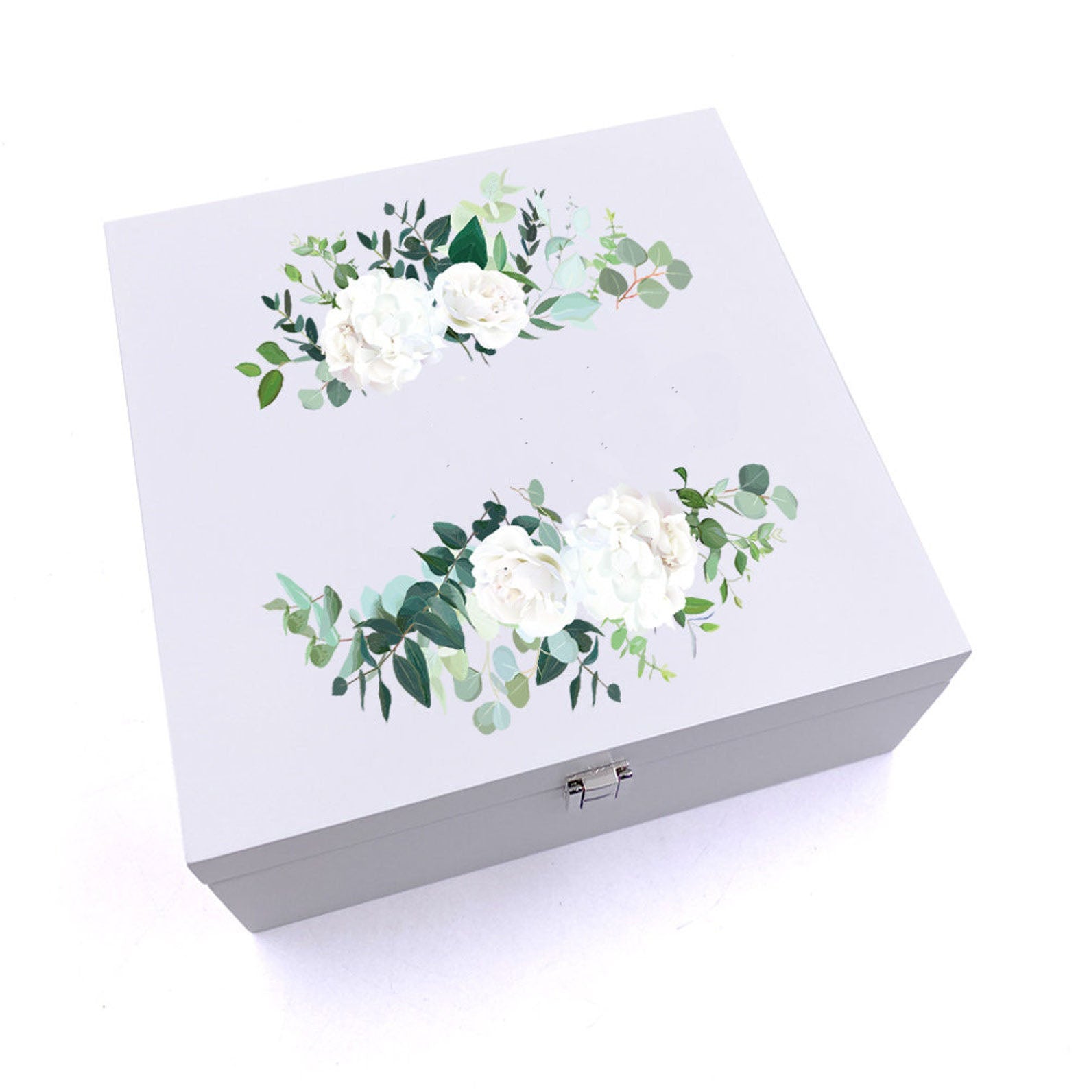 Personalised Flowers Birthday Keepsake Wooden Box. A contemporary luxury white wooden memory box, personalised with a main...