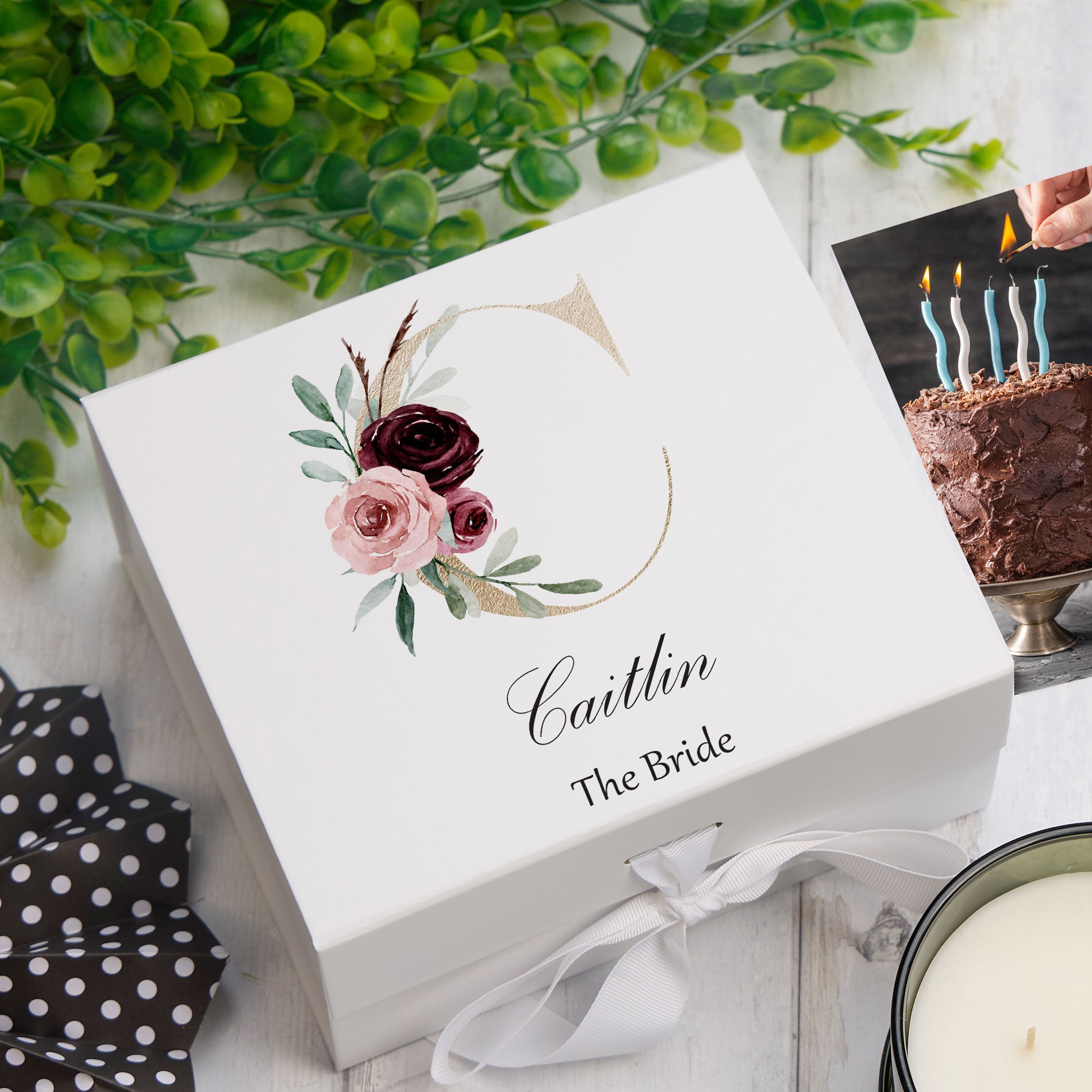 A personalised keepsake box featuring your custom monogram in elegant gold lettering. Ideal for storing jewellery, letters,...