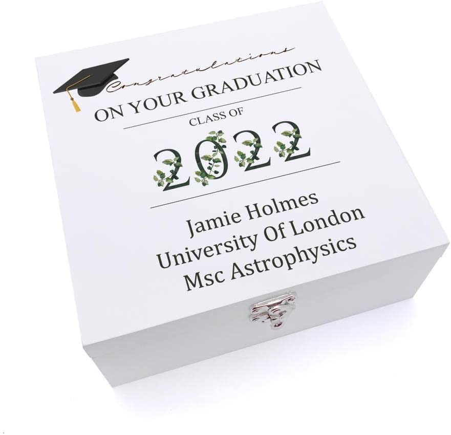 Personalised Graduation Large Keepsake Memory Wooden Box Gift Leaf Design