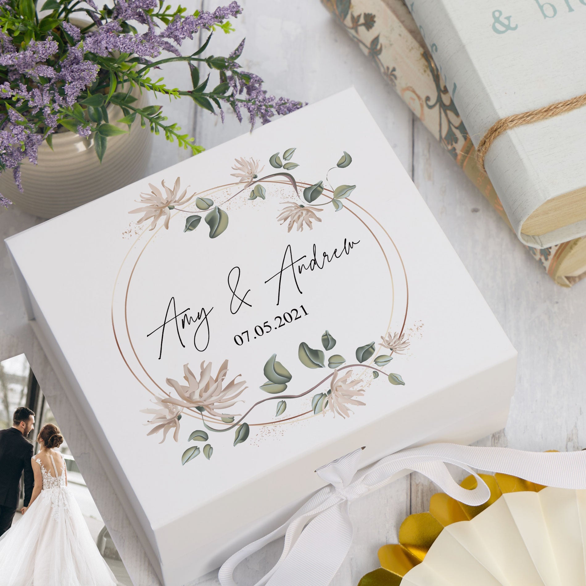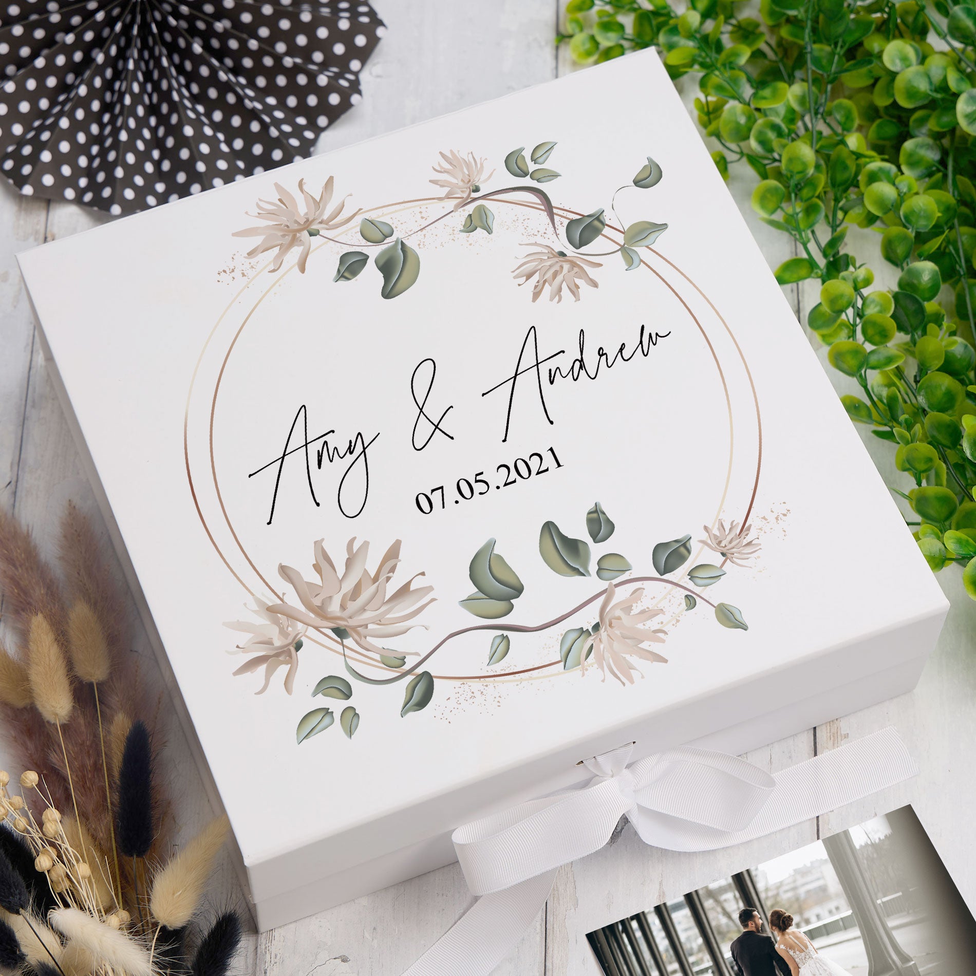 The personalised print on this luxury box is raised slightly to create a stunning embossed-style feature. The box itself is sturdy and durable - made from a luxurious 1200gsm white matt laminated rigid board. Available in two sizes and used as a gift box, as a memory box or as part of a hamper. Medium 17cm x 17cm x 8cm Large 30cm x 30cm x 9cm It can be used as a gift box, as a memory box or as part of a hamper.