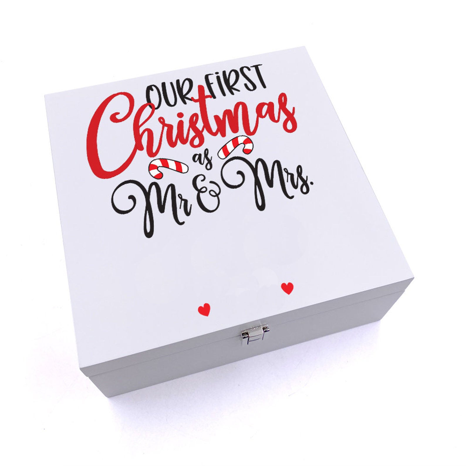 ukgiftstoreonline Personalised Mr and Mrs Our First Christmas Keepsake Wooden Box