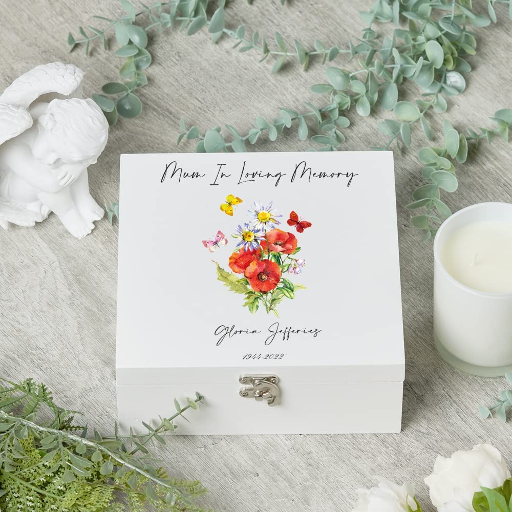 ukgiftstoreonline Personalised Mum Remembrance Keepsake Wooden Box flowers and Butterflies