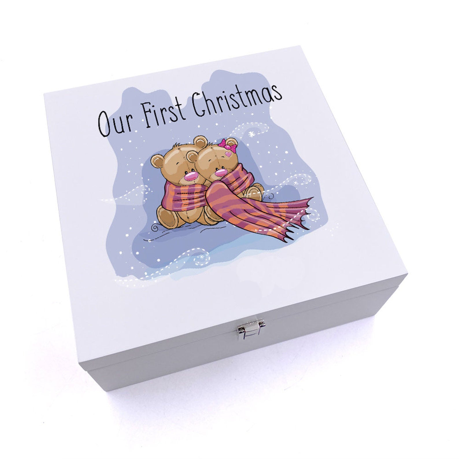 If you are looking for an extra special gift then these keepsake boxes are sure to be cherished and filled with mementos along the years. Perfect to fill with gifts, photos and other bits and bobs. Made from a white coated wood with your details printed directly onto the lid using the latest printing technology. The inside of the box has a natural wood finish. The boxes have beautiful chrome plated metal hinges and clasp to hold shut ensuring they last for years. Dimensions: H8 x W20 x D20cm