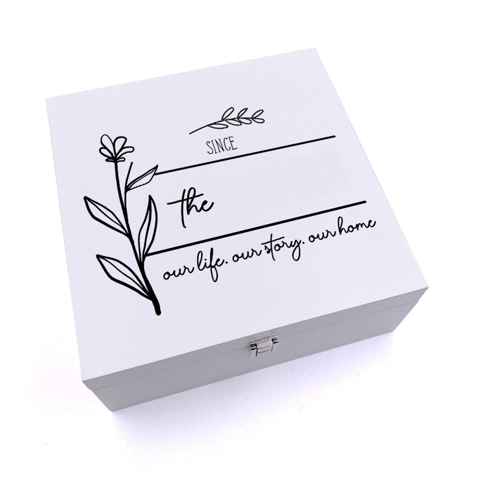 If you are looking for an extra special gift then these keepsake boxes are sure to be cherished and filled with mementos. Perfect to fill with gifts, photos and other bits and bobs. Made from a white coated wood with your details printed directly onto the lid using the latest printing technology. The inside of the box has a natural wood finish. The boxes have beautiful chrome plated metal hinges and clasp to hold shut ensuring they last for years. Dimensions: H8 x W20 x D20cm